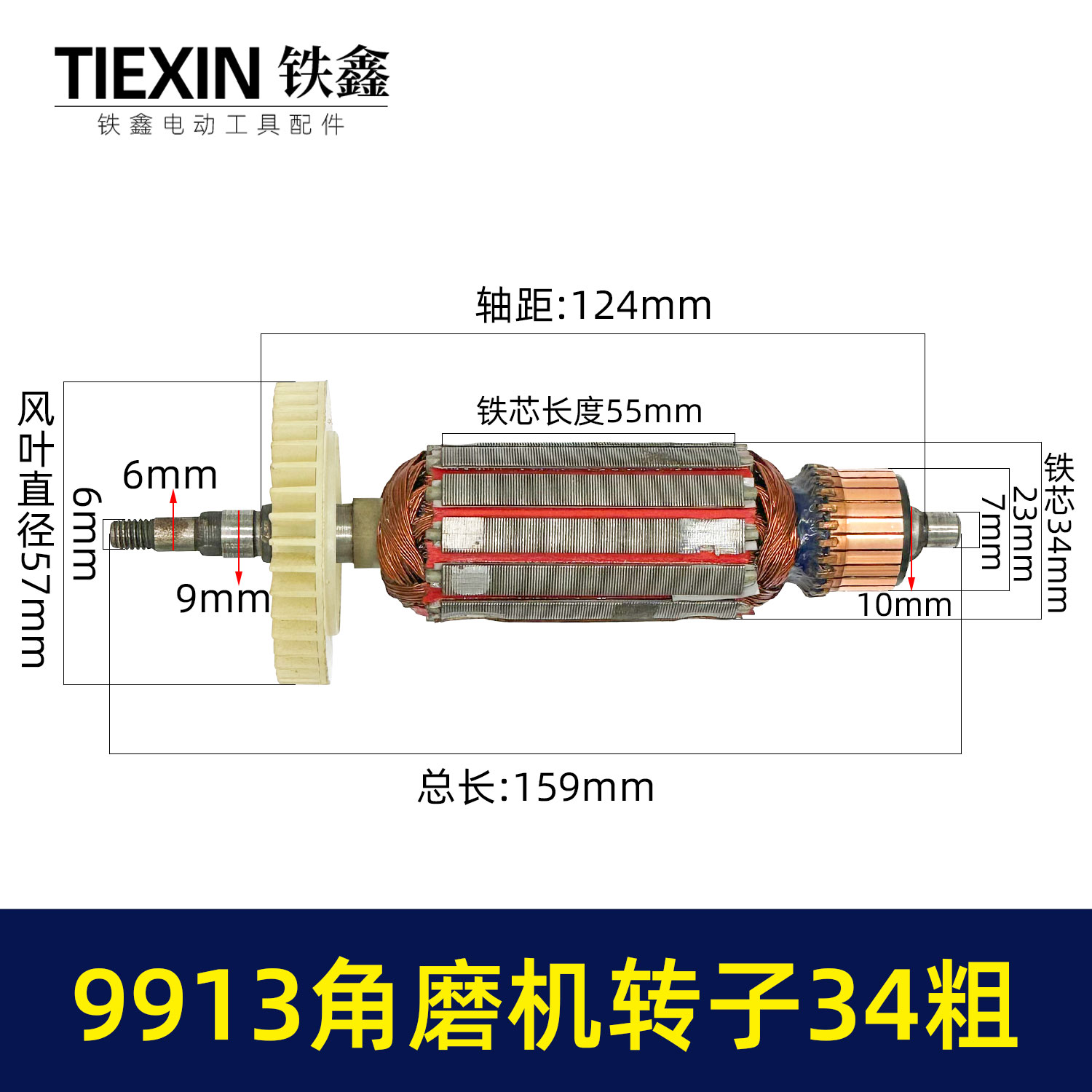 【货号07595】加粗34MM直径老款9913角磨机转子磨光机电机大功率打磨机转子角磨机配件