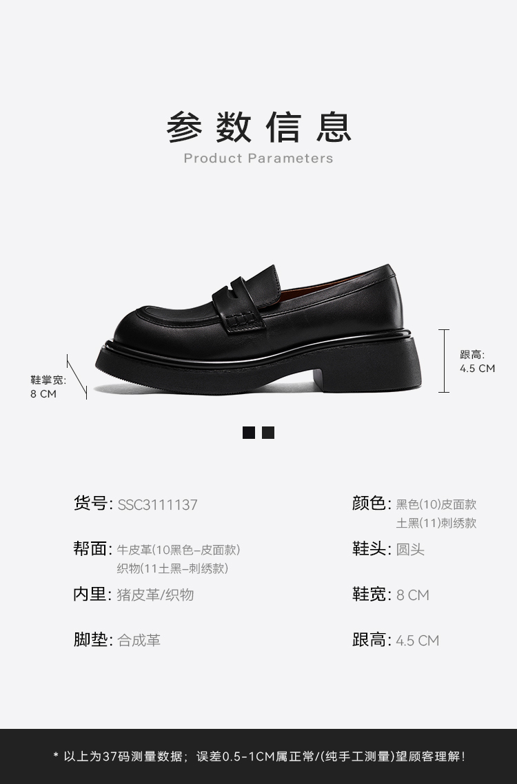 星期六街头风复古金扣厚底乐福鞋SSD3111CDH