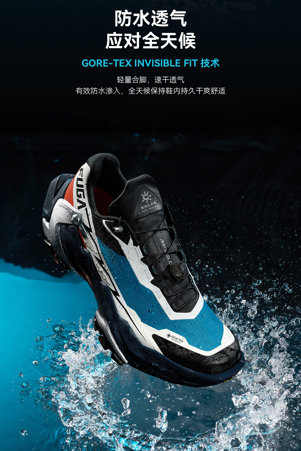 KAILAS凯乐石 男女款低帮防水跑山鞋(Fuga DU 2 GTX) KS2533132/KS2533232
