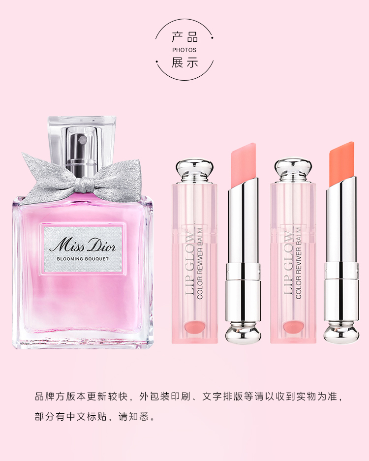 迪奥香水唇膏两件礼盒 花漾甜心50Ml+变色唇膏(001号 004号 ) 带礼盒手提袋