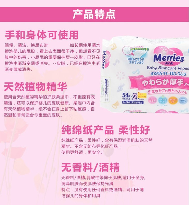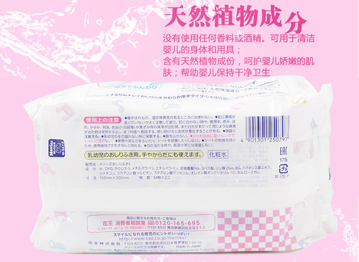 2包装|【一般贸易】 日本花王 婴儿柔湿巾宝宝湿纸巾54片*2包