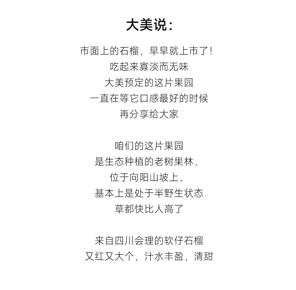 [突尼斯软籽石榴】产地直发来自四川石榴之乡凉山会理县,生态种植的山坡老树果,皮薄、粒大、汁多、味甜!