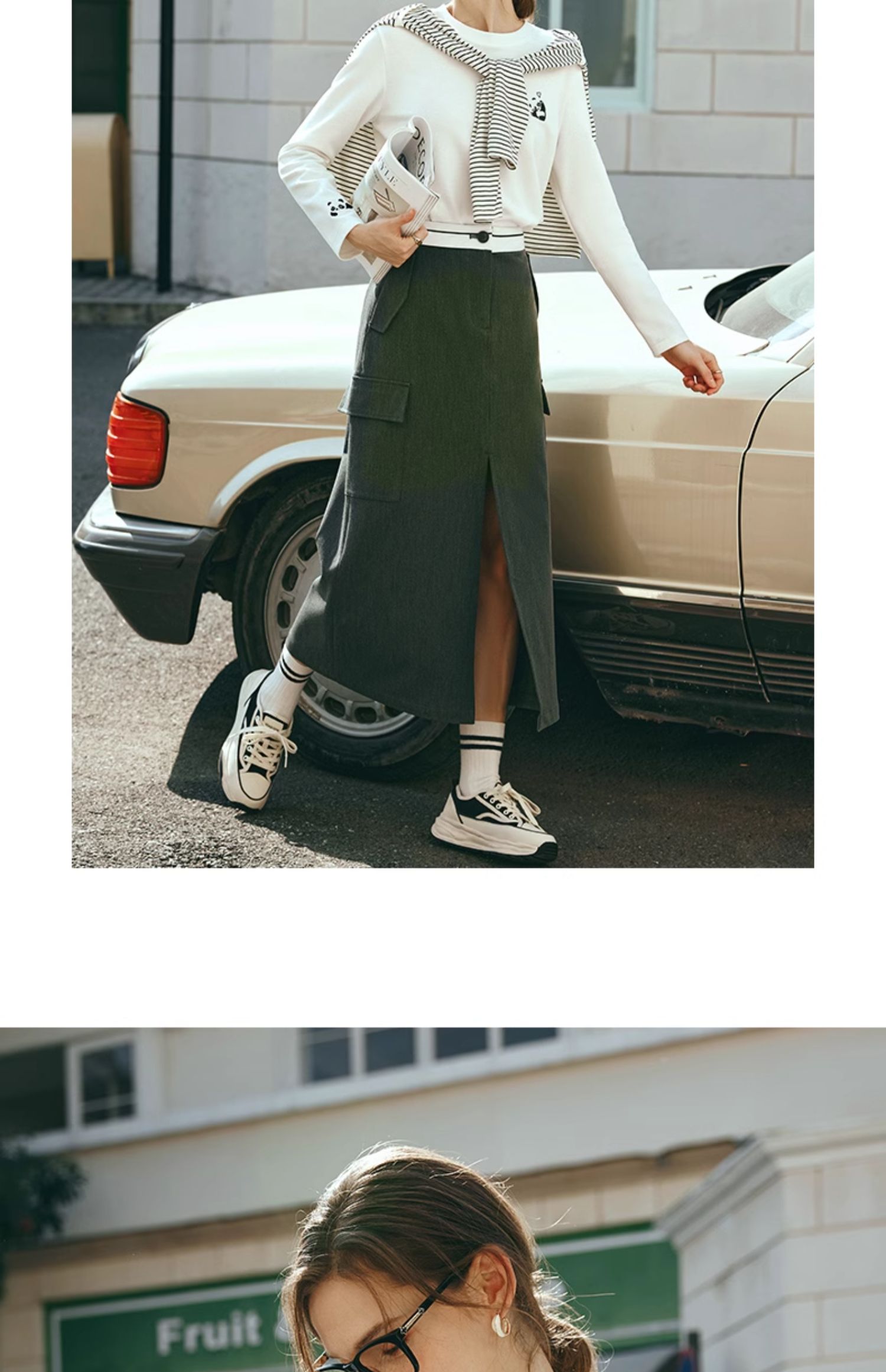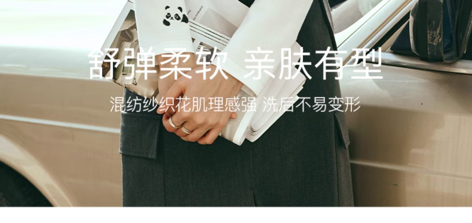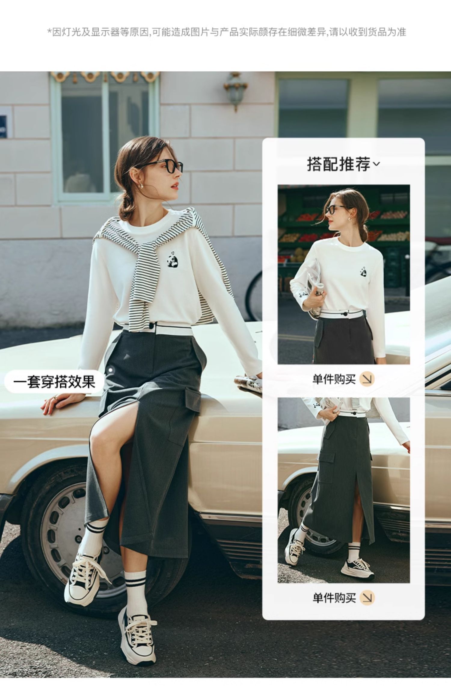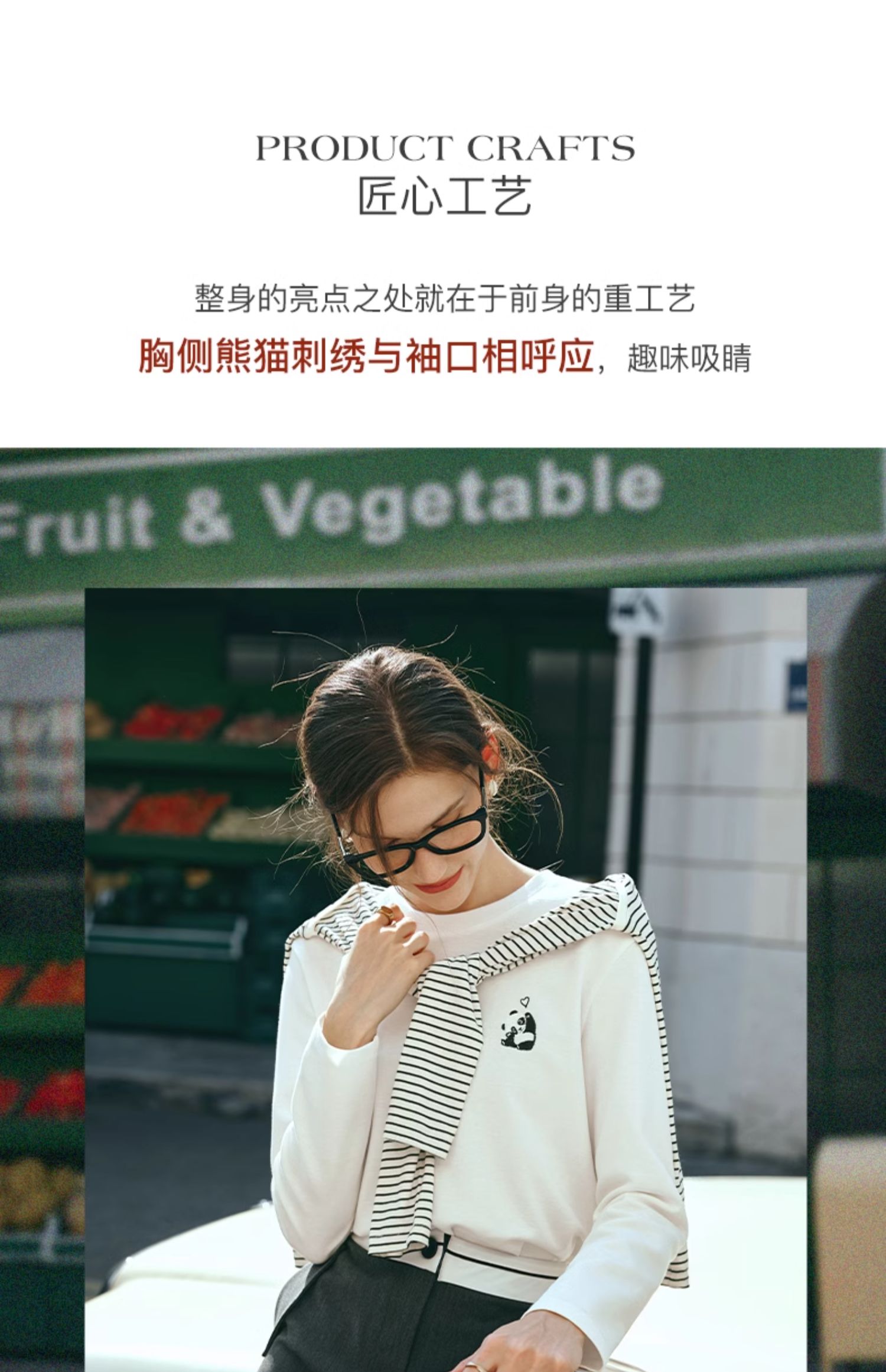 OLrain欧芮儿米白色长袖T恤女早春2024新款宽松百搭熊猫刺绣上衣