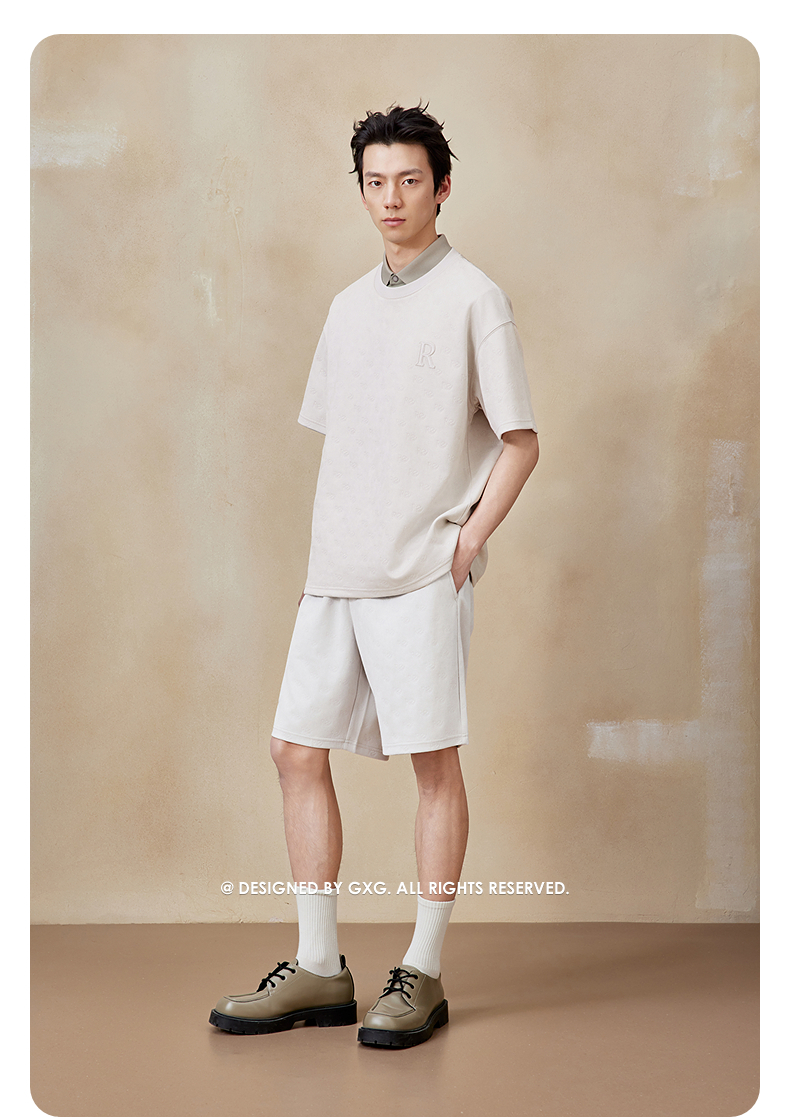 GXG男装 仿麂皮休闲短裤满印休闲裤男裤25年夏季热卖G25X222044