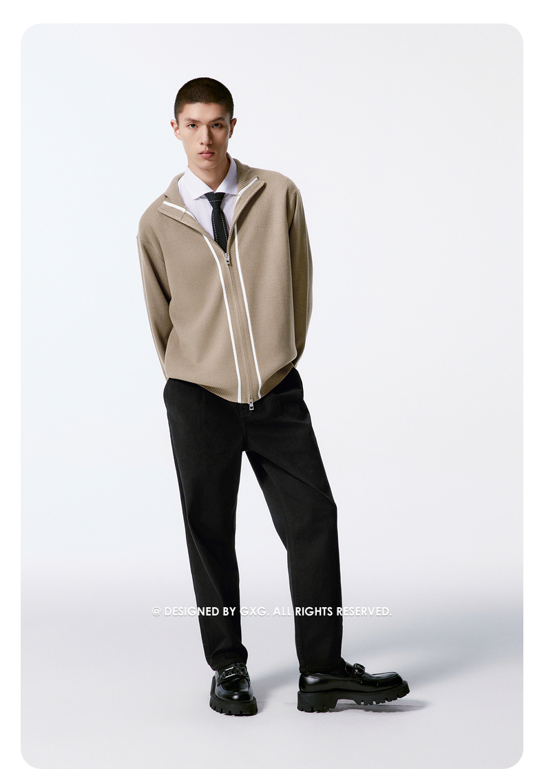 GXG男装 新年绣花毛衣拼接针织毛衫外穿简约外套 2025年冬季新品