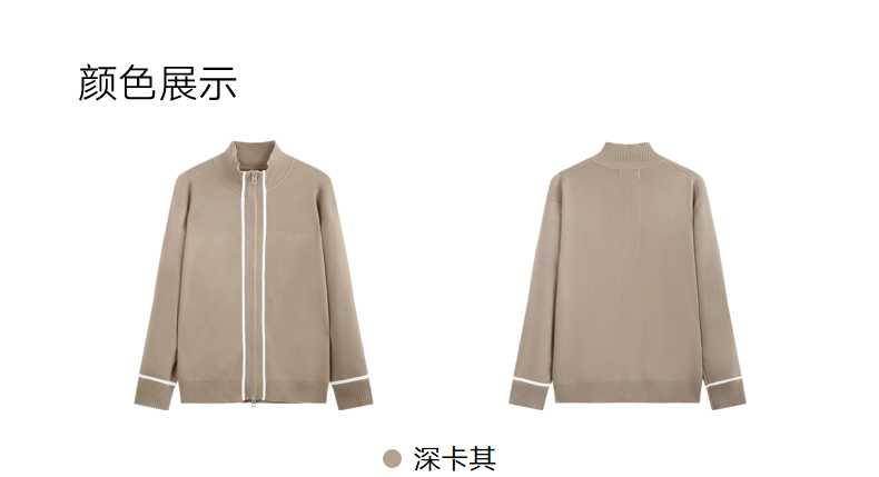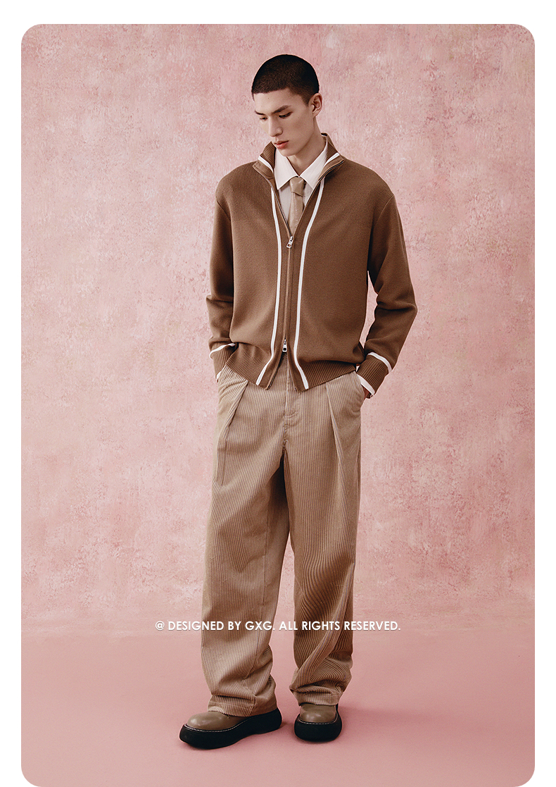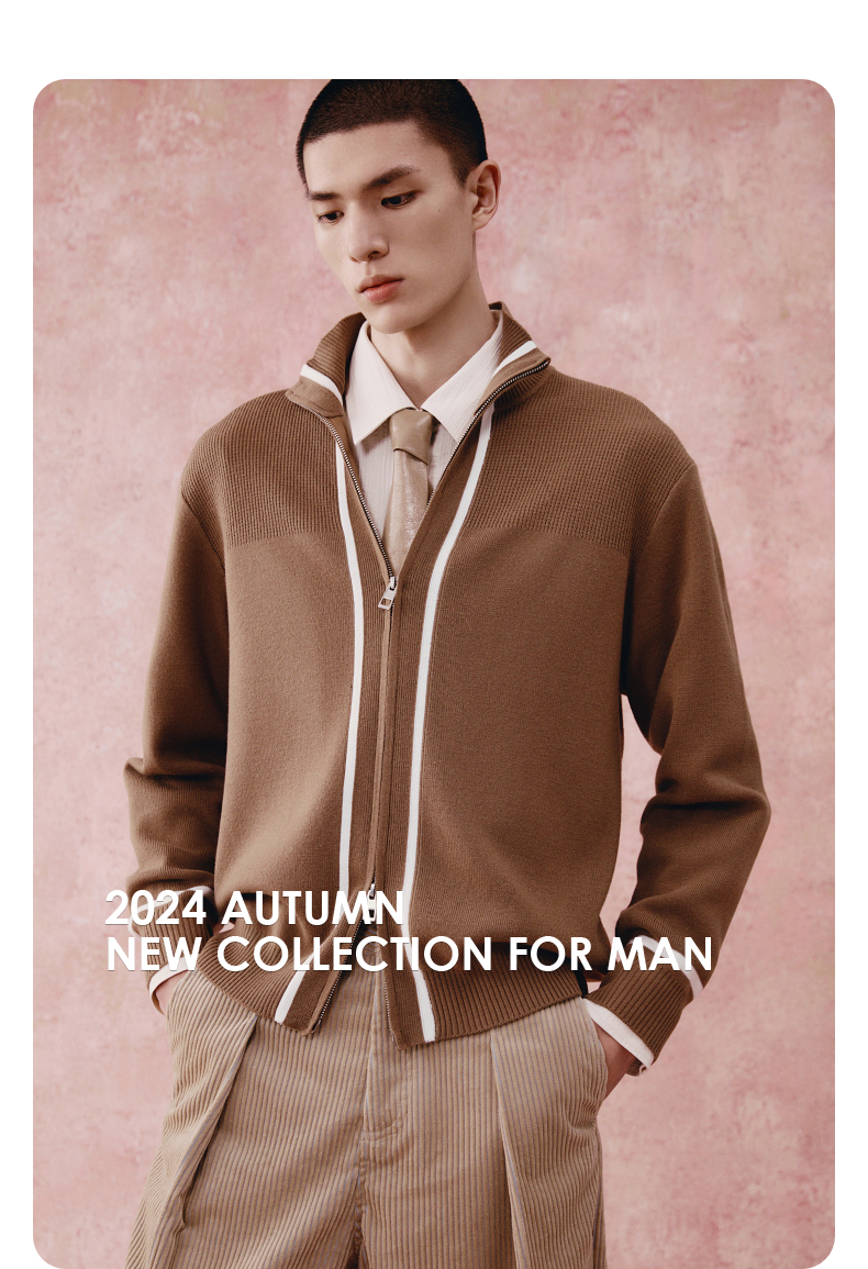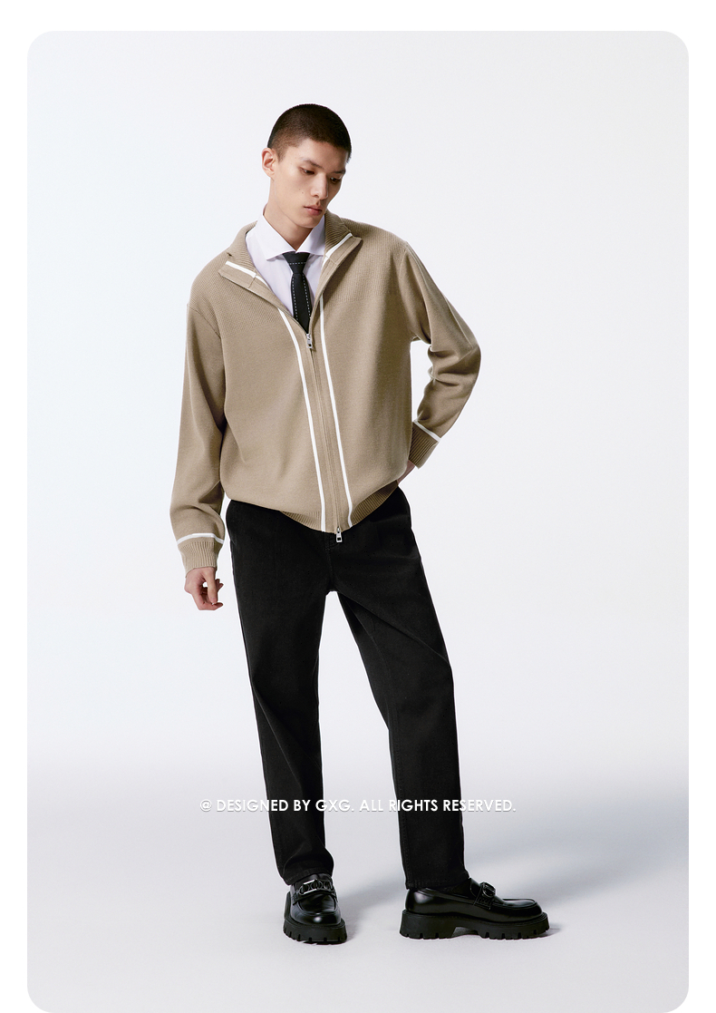 GXG男装 高领开襟毛衫撞色条纹针织衫 24年秋G24X303001