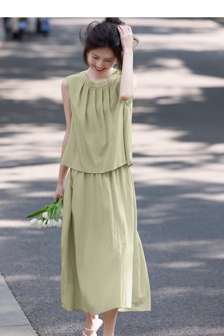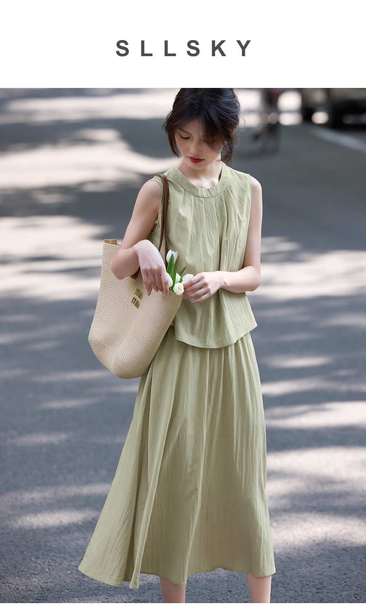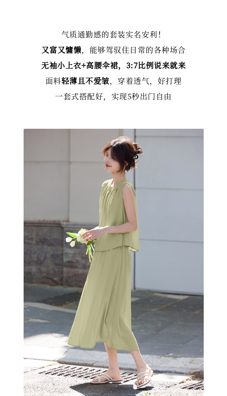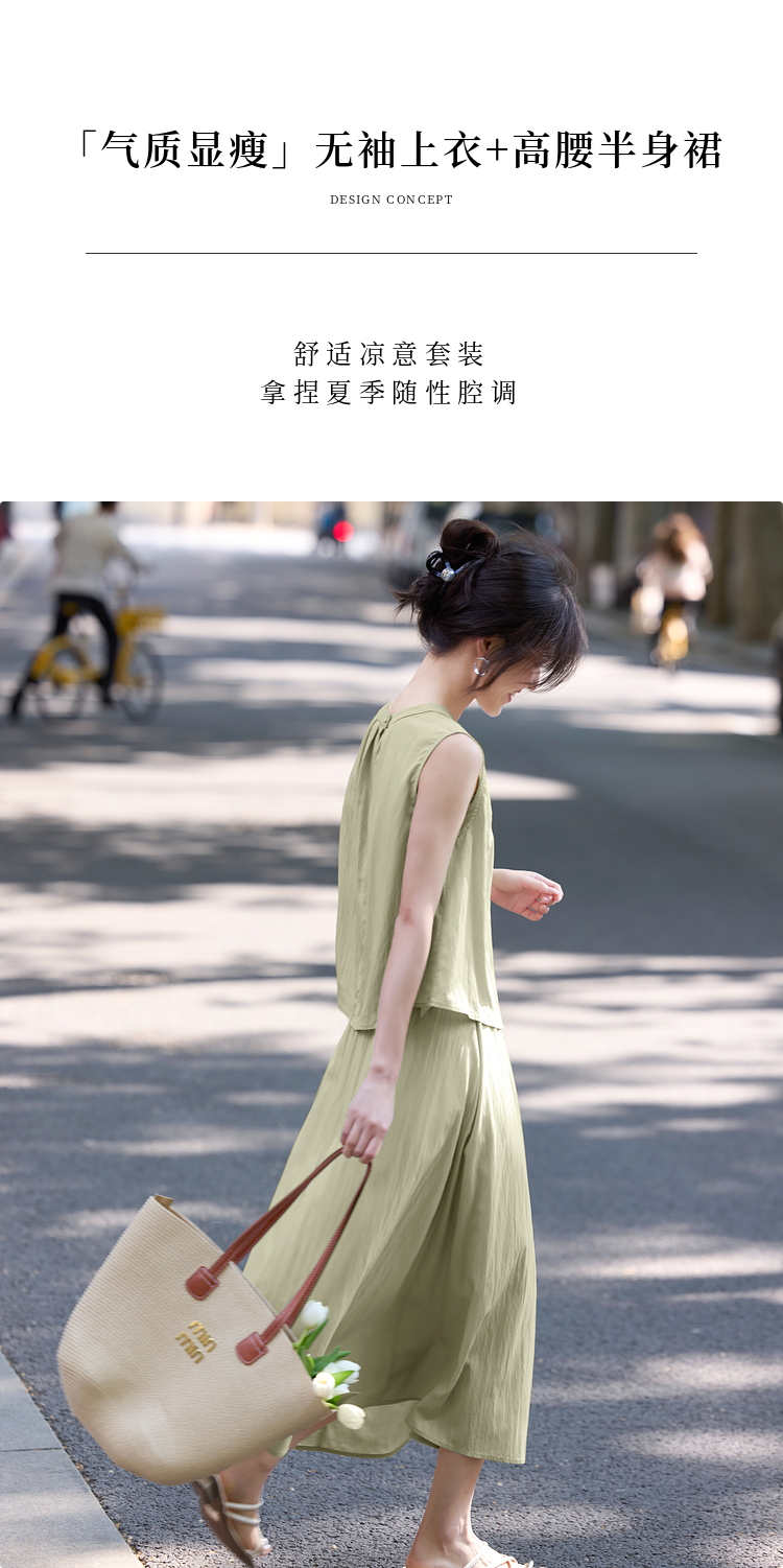 【专属特价】熙世界夏日松弛感套装女2025年新款休闲宽松无袖上衣半身裙两件套