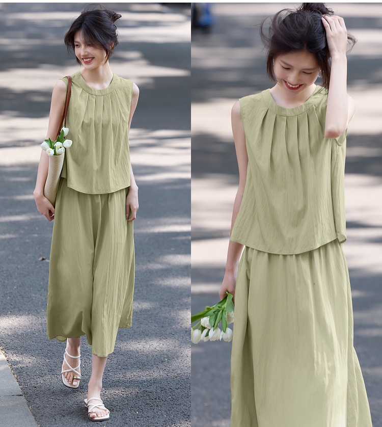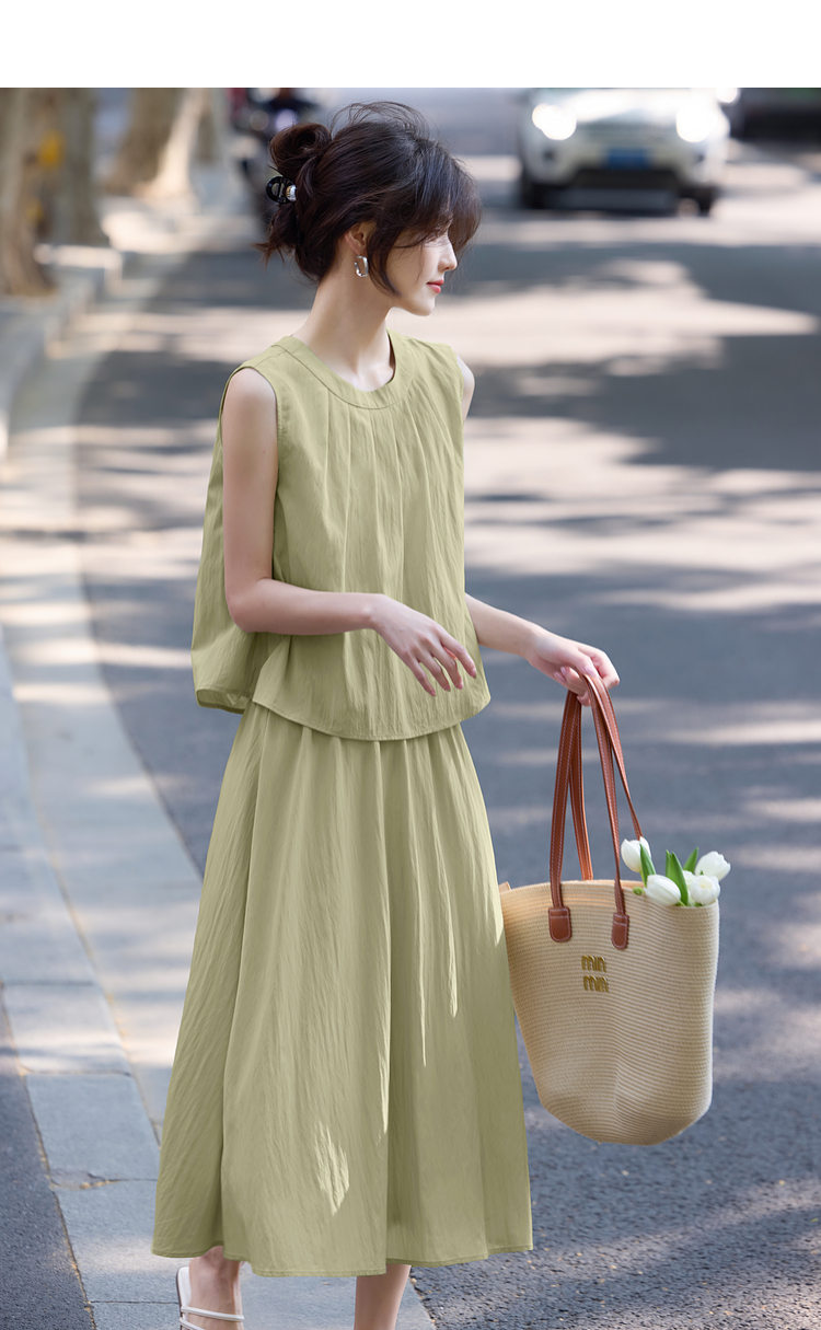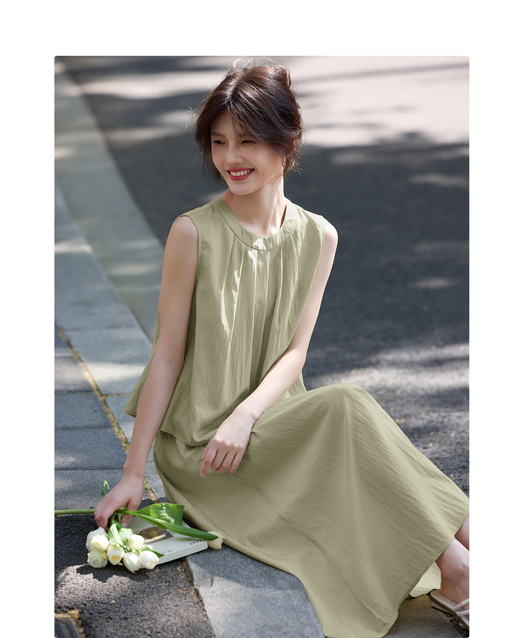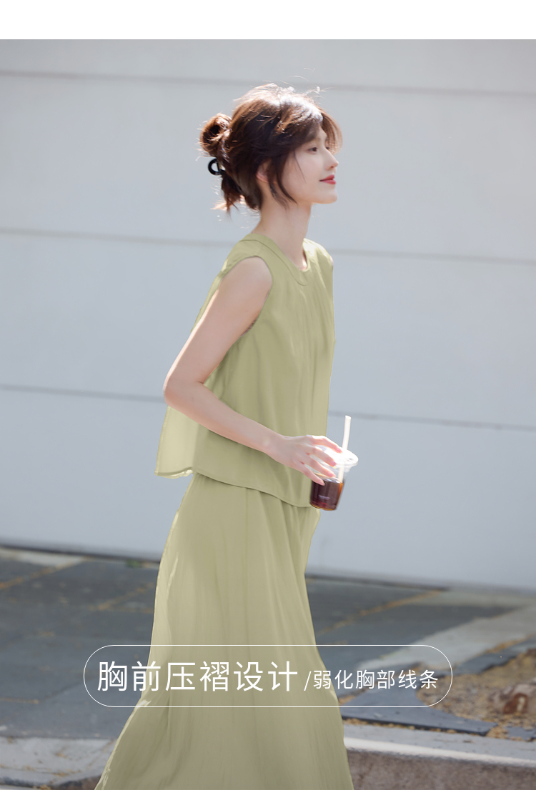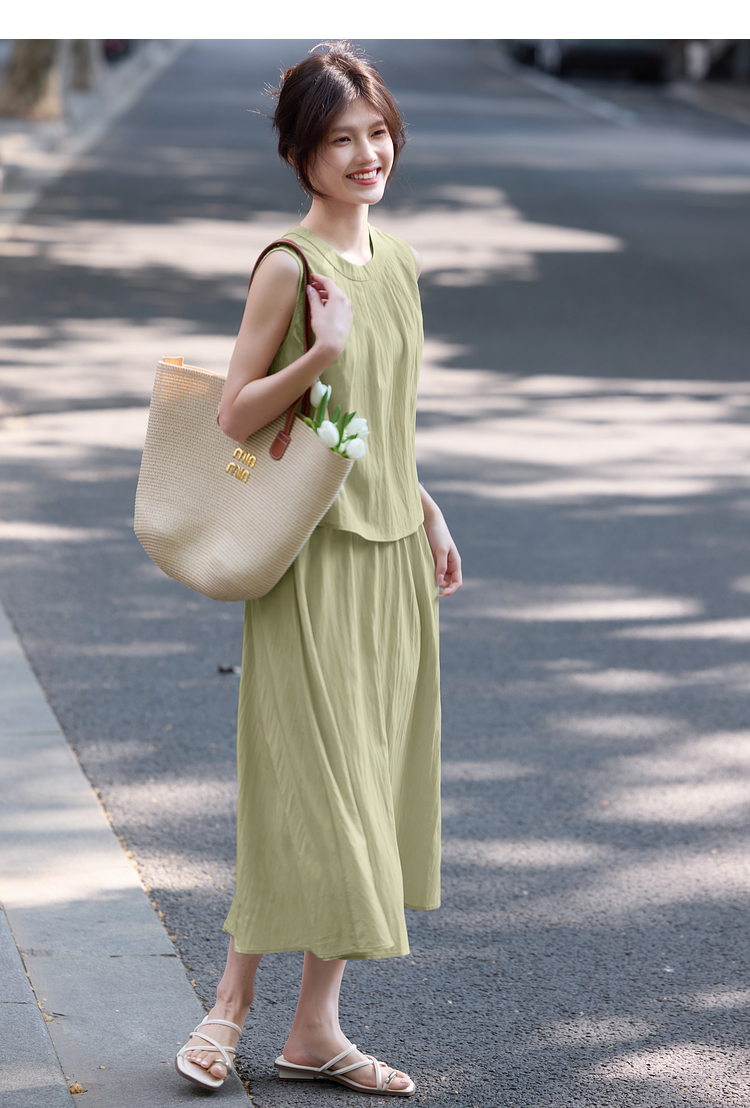 【专属特价】熙世界夏日松弛感套装女2025年新款休闲宽松无袖上衣半身裙两件套