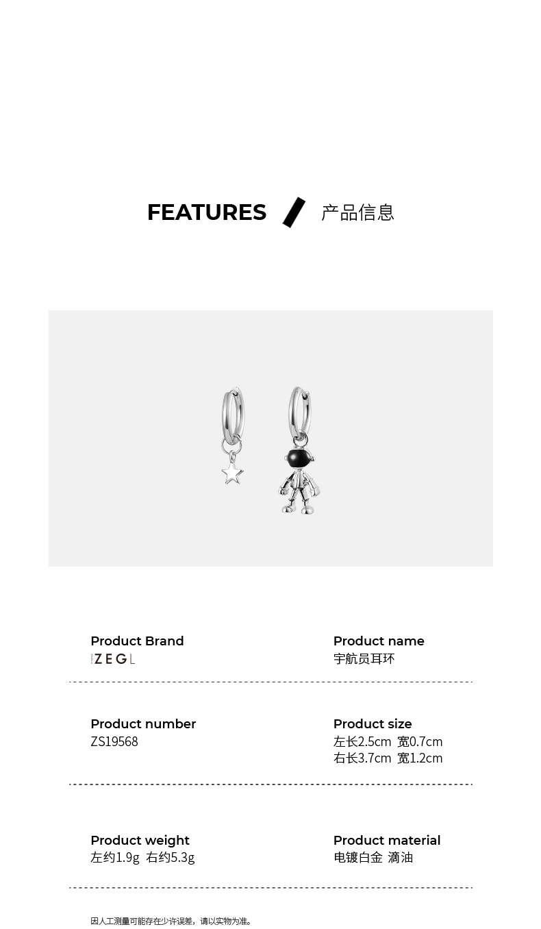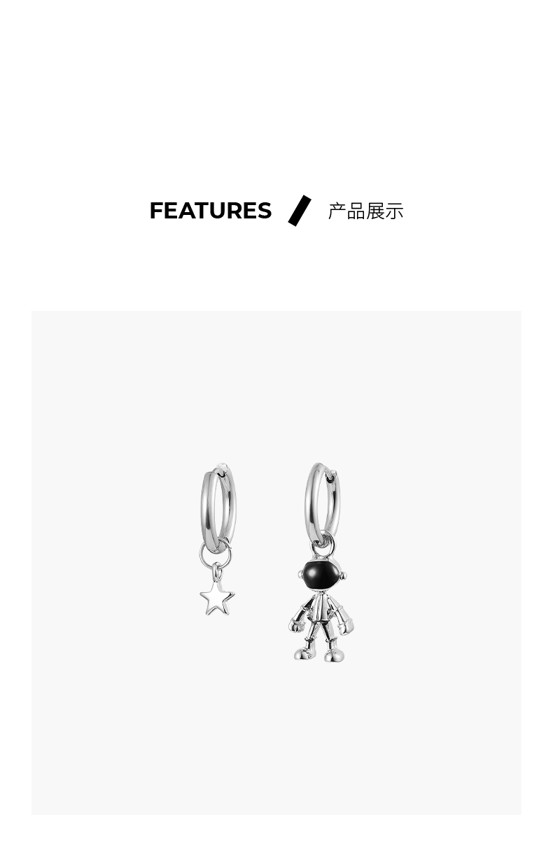 ZEGL宇航员星星耳环女小众设计感耳钉耳扣2021年新款潮不对称耳饰