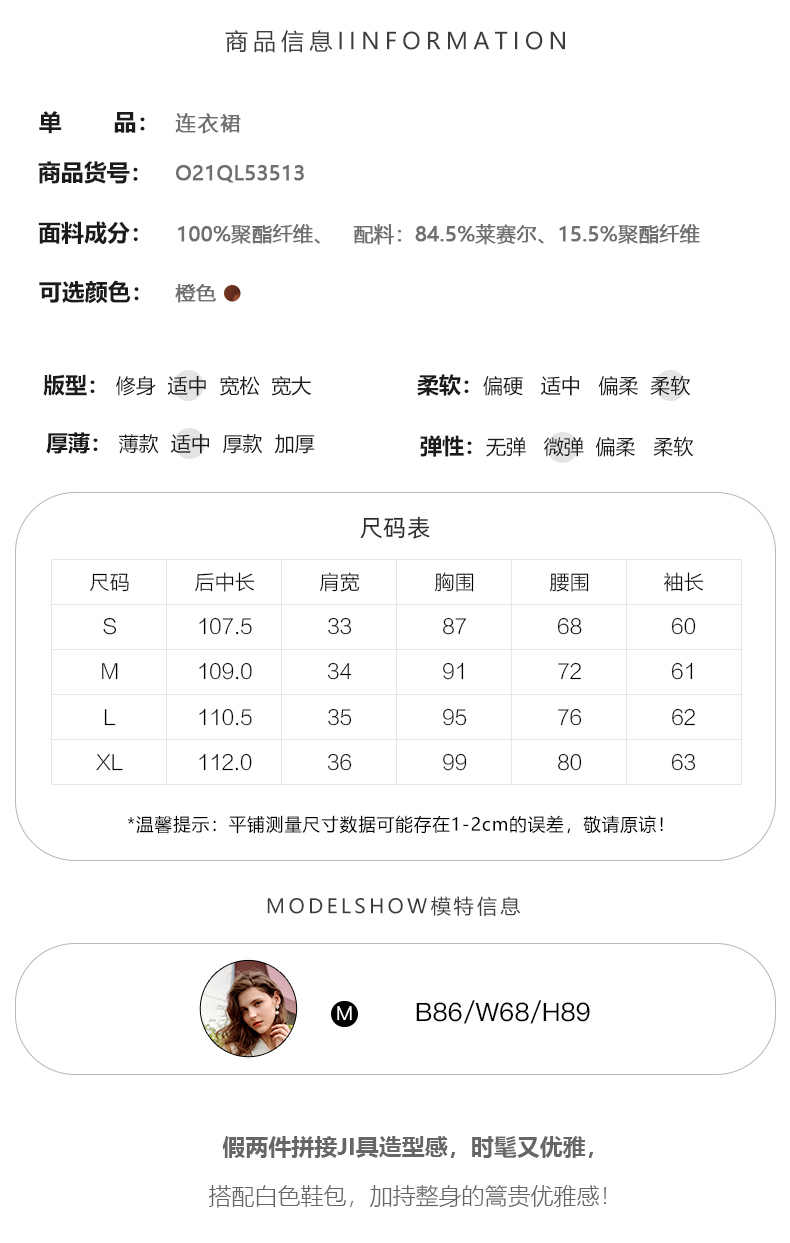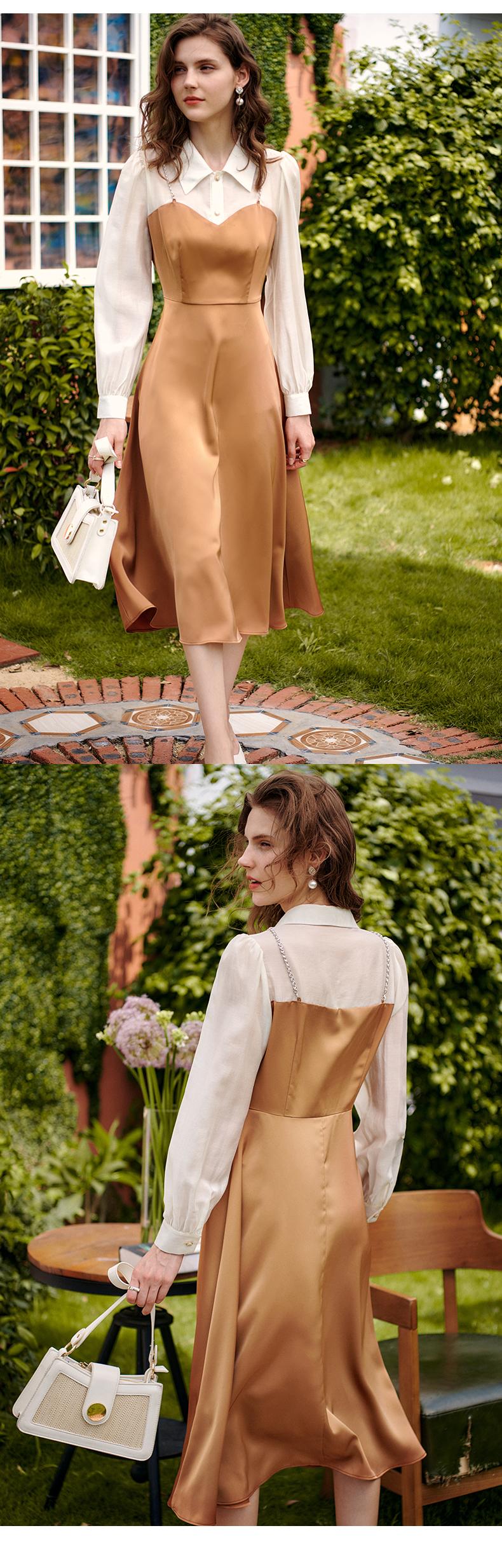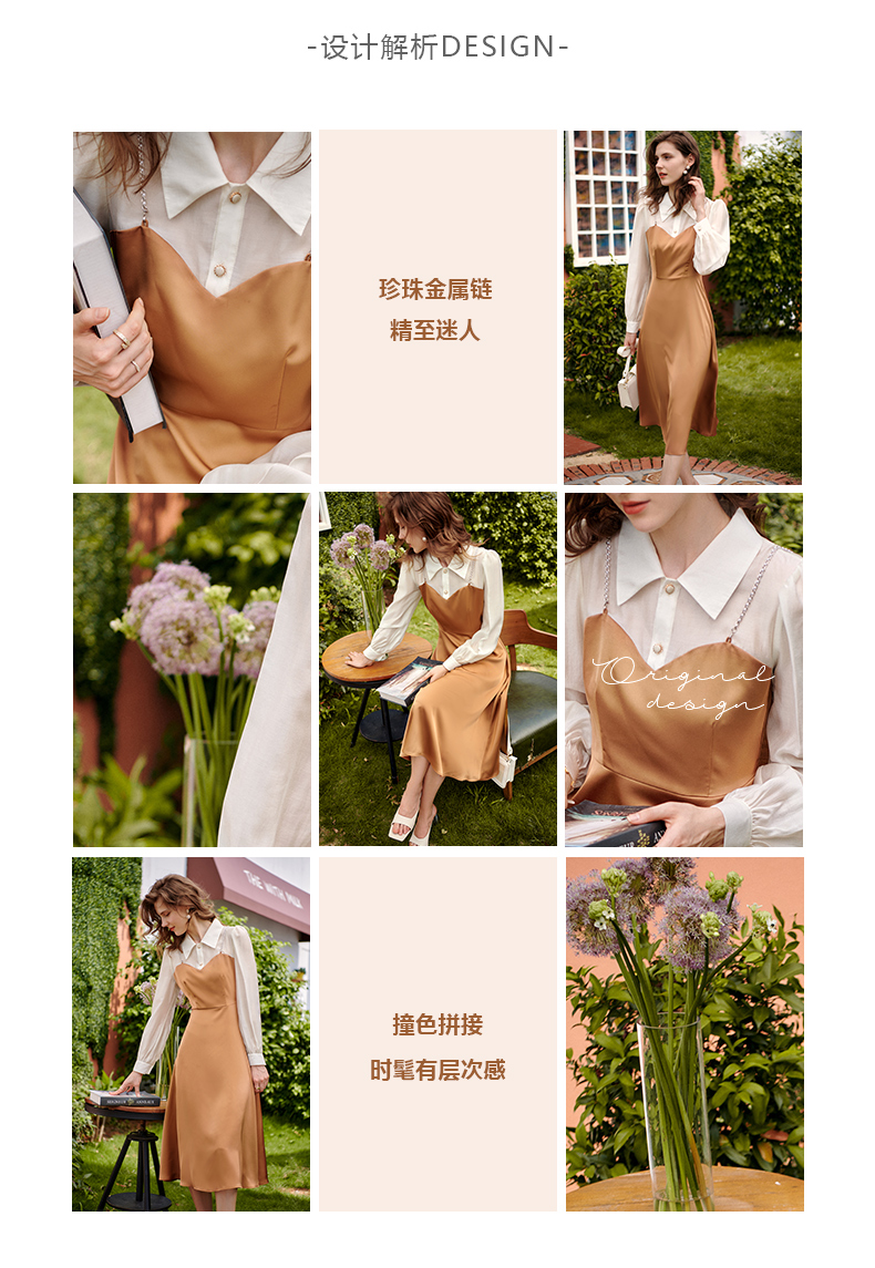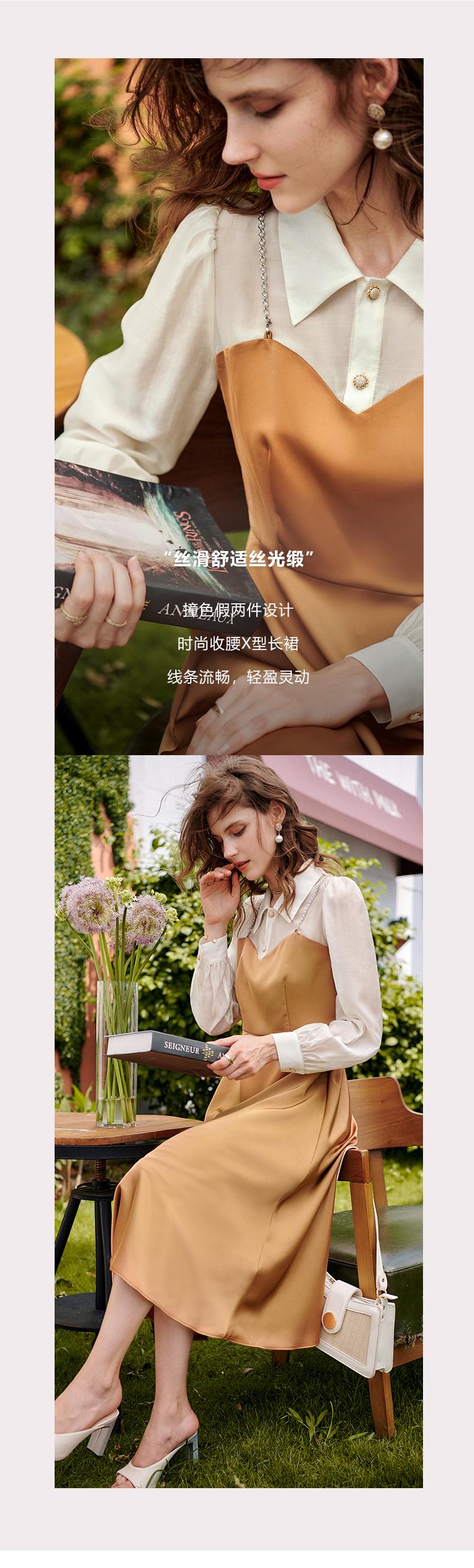 欧芮儿假两件连衣裙女长袖新款2021收腰显瘦时尚气质撞色裙子