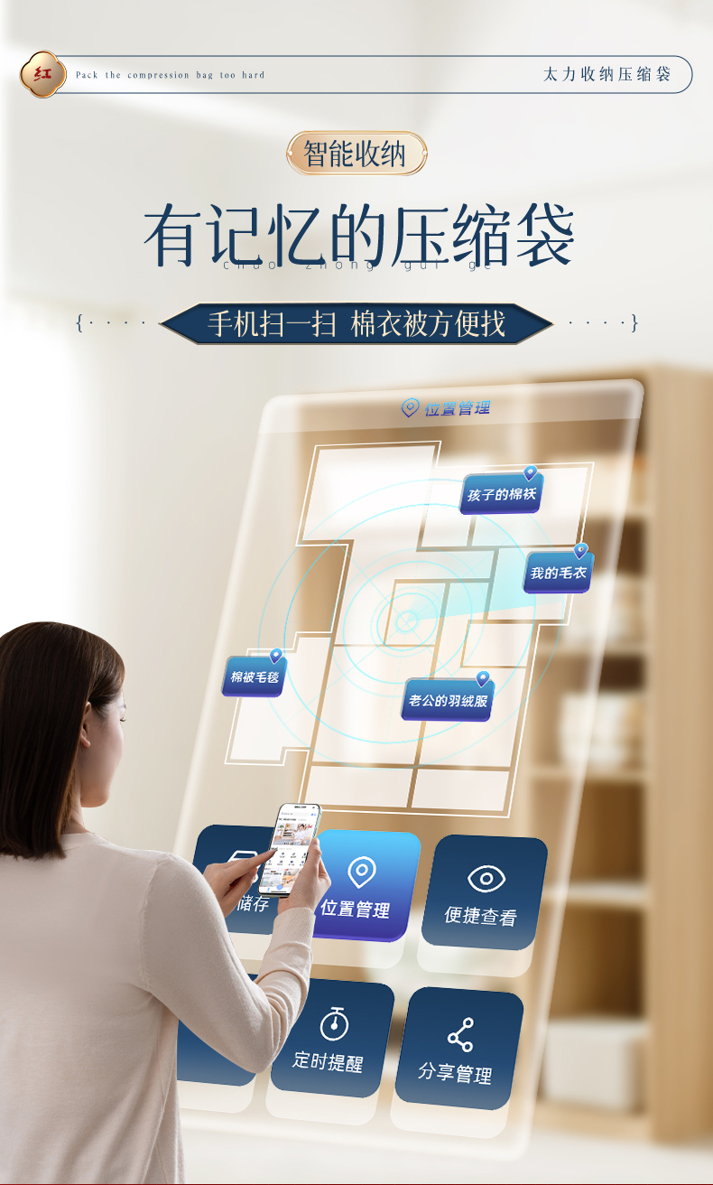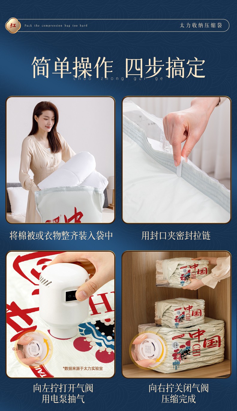 太力(TAILI)中国红真空压缩收纳袋中号立体*1AZ474