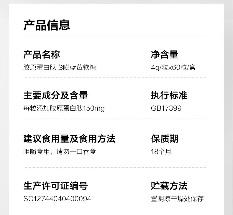 汤臣倍健Yep嘭嘭弹双层胶原蛋白肽蓝莓味软糖60粒/盒