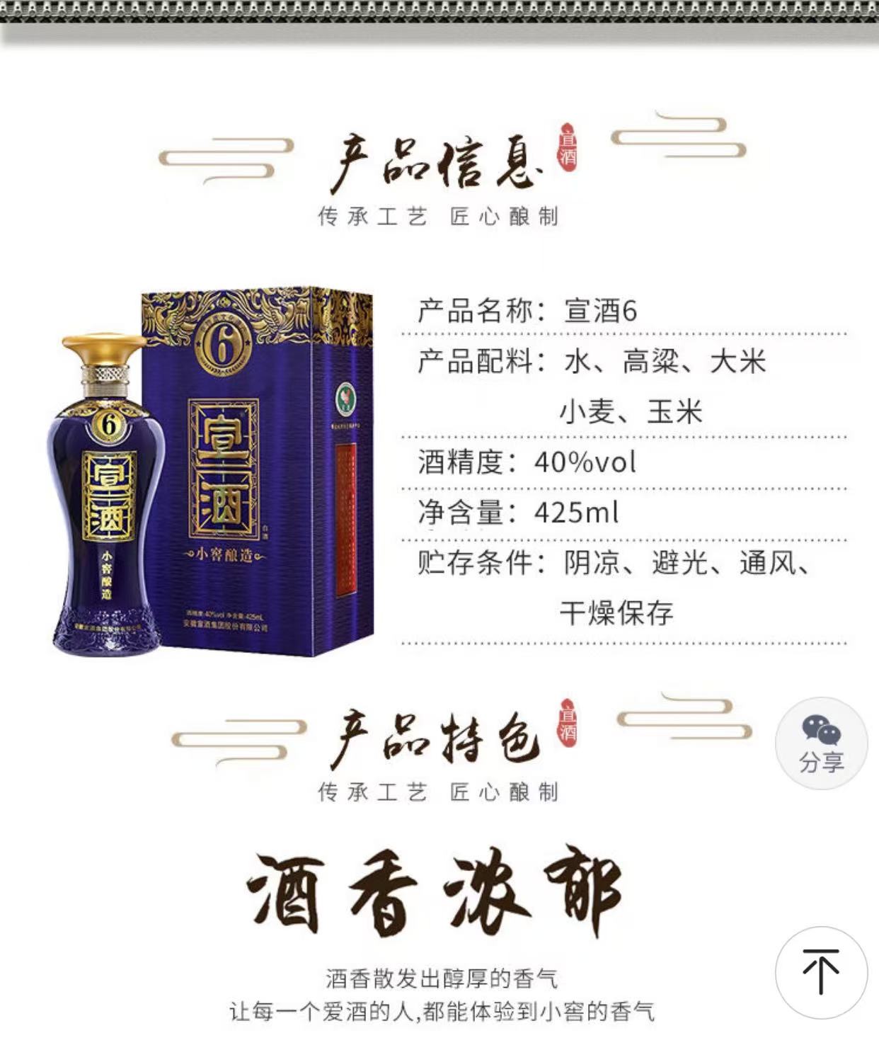 宣酒6 40度浓香型白酒 425mL /瓶【BH】【YGMP】