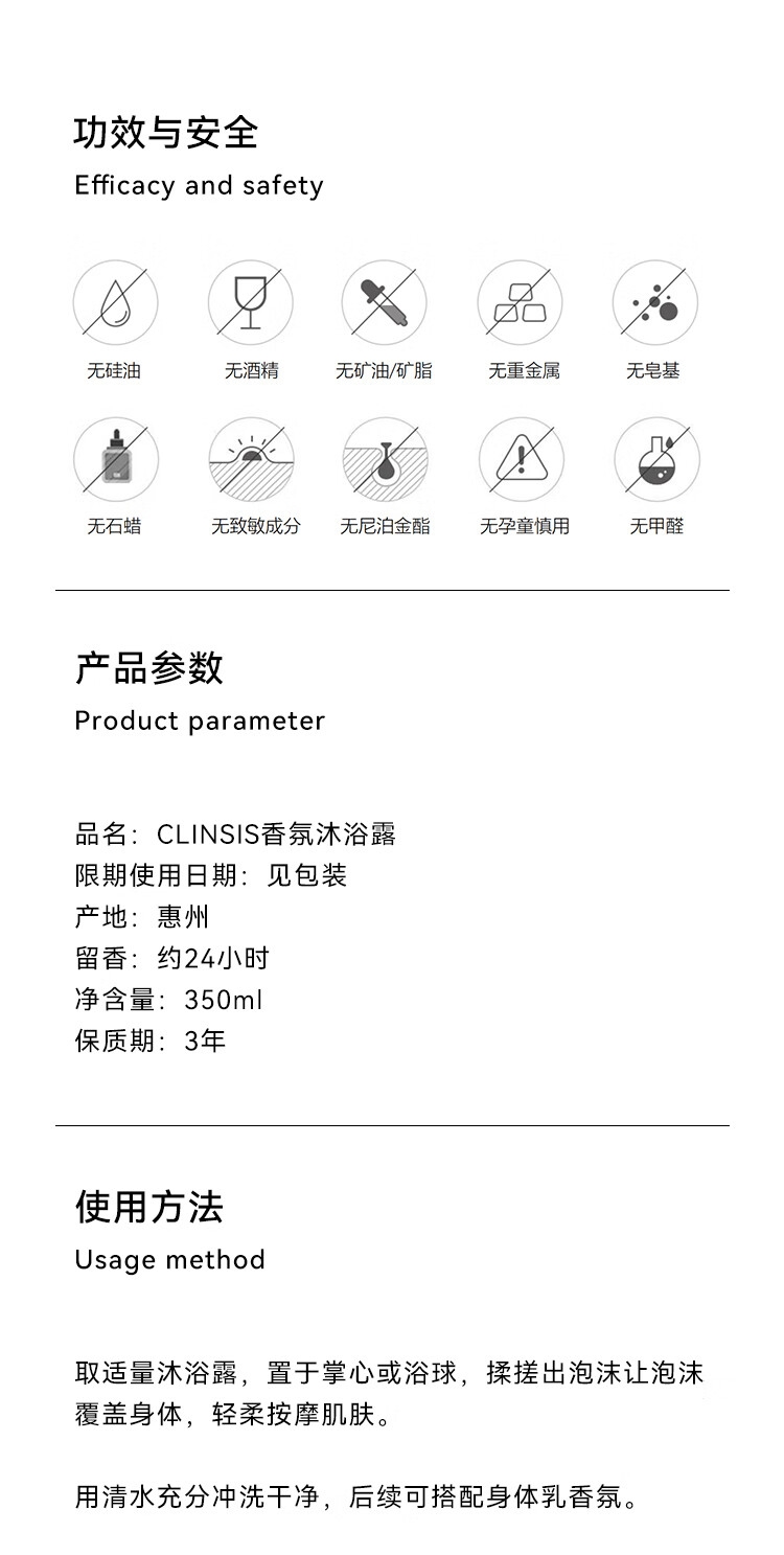 法国CLINSIS香氛沐浴露 350ml 【琥珀乌木】【白色衬衫】【暗夜幻境】
