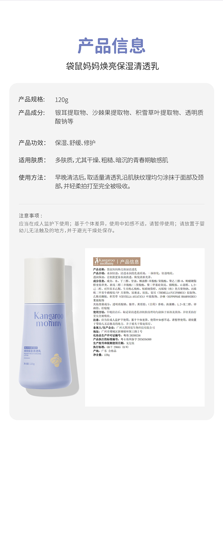 【青少年焕亮清透乳】积雪草修护乳 28天焕亮 清润强锁水 焕亮保湿清透乳120g