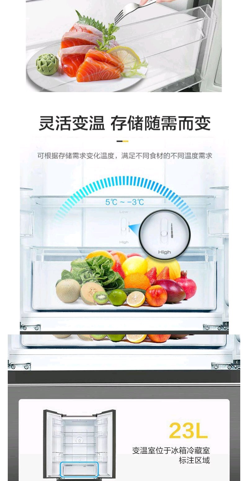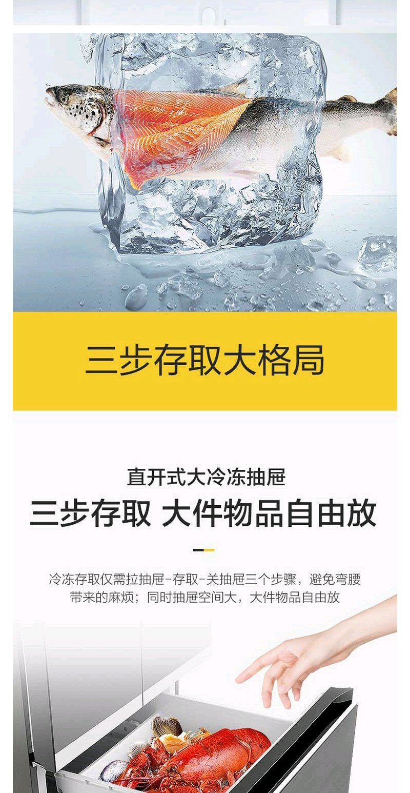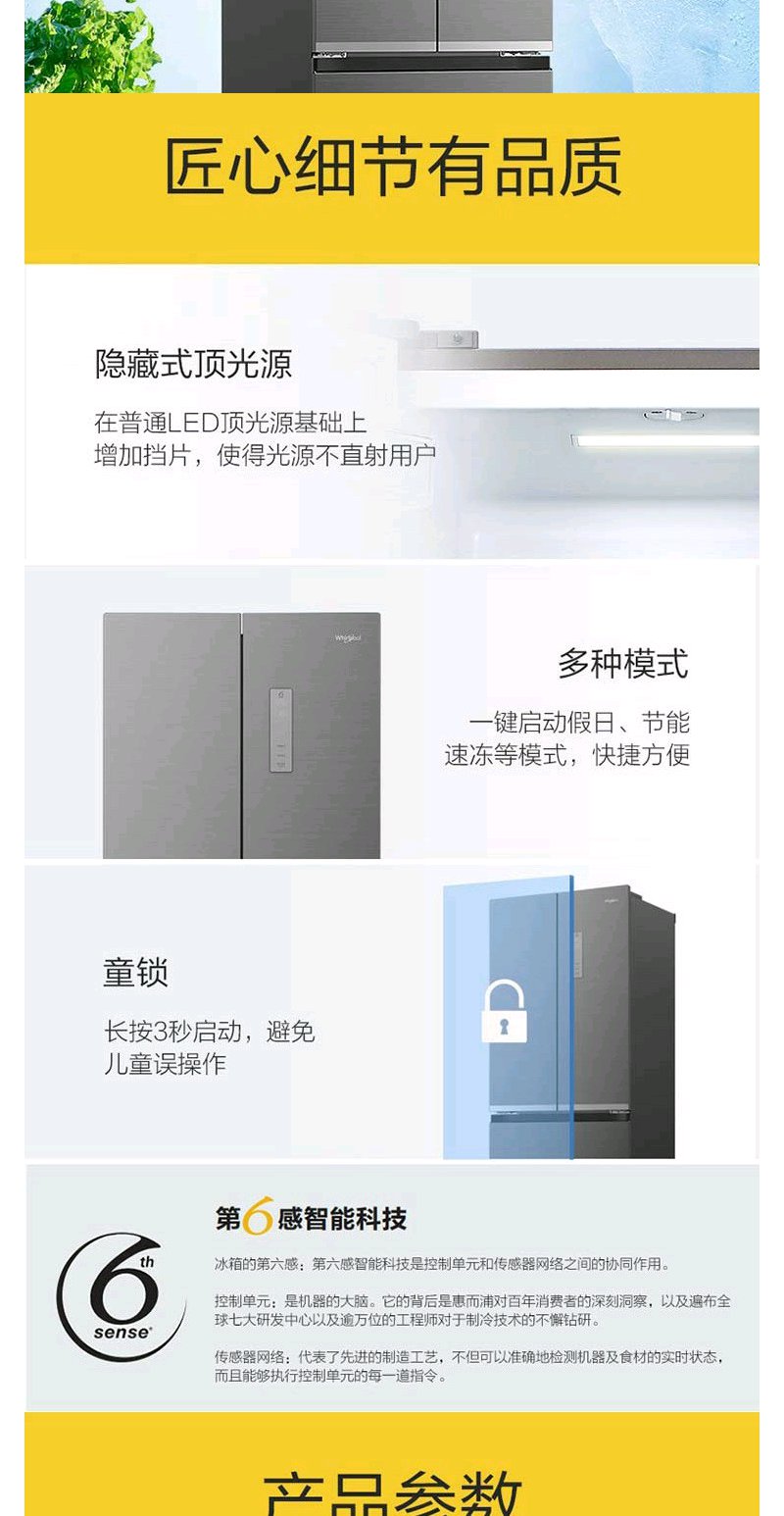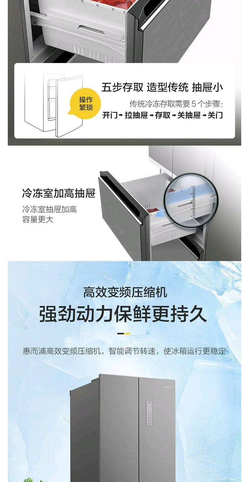 惠而浦(Whirlpool) BCD-326WMGBWS 法式多四门风冷超纤薄嵌入0度保鲜家用电冰箱 326L