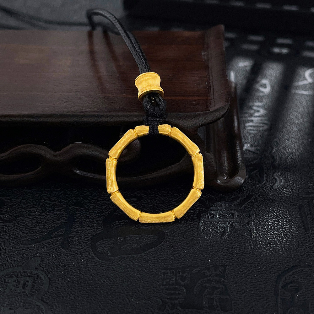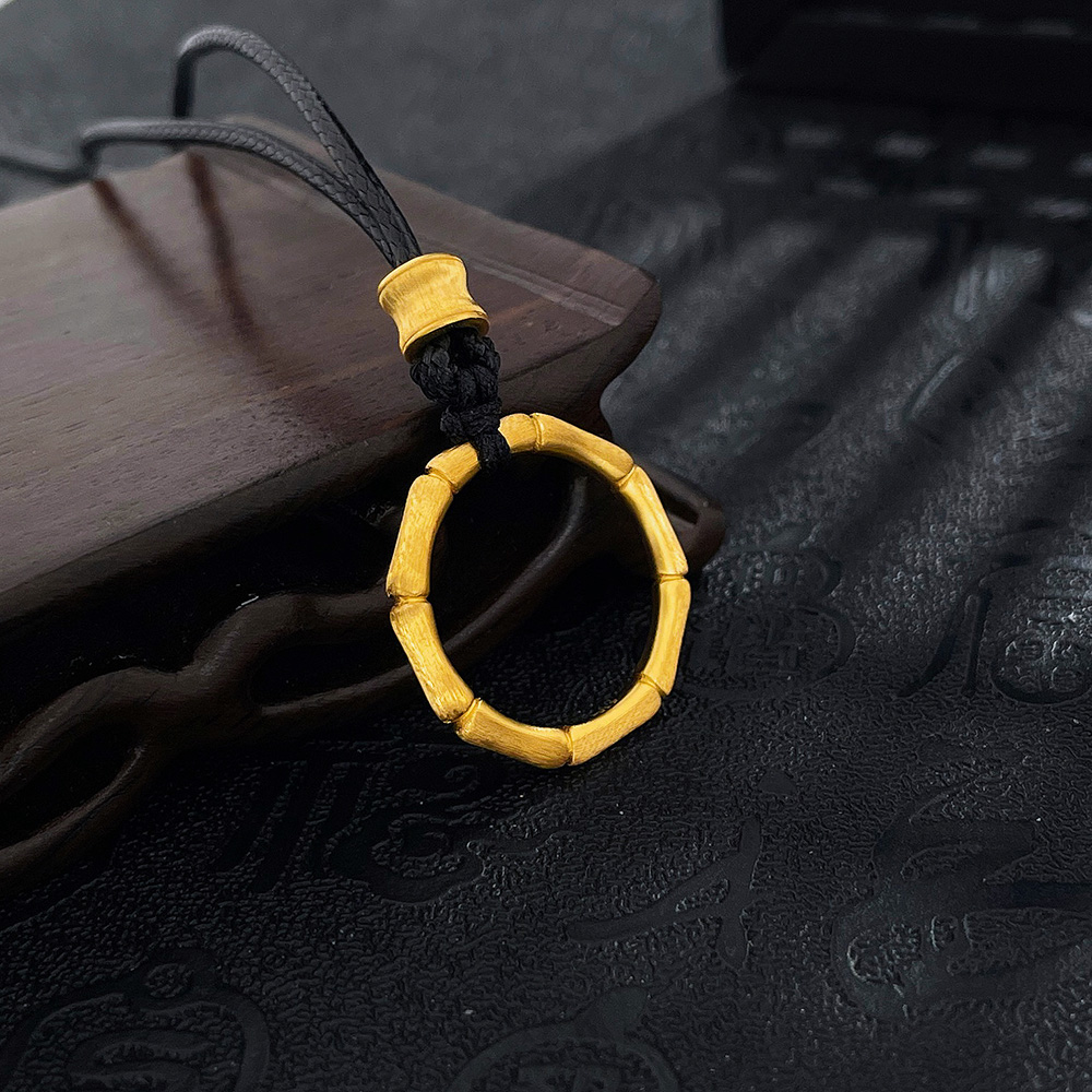 【限时克减150元】足金999 #平安 #复古风 古法空心挂绳吊坠国潮传承节节高升冰丝金丝绒金竹节平安扣吊坠(AUQGFDZ00150)(预售产品下单后不退款不退货不换货不补差价)