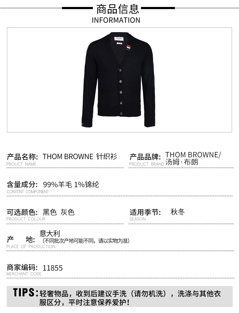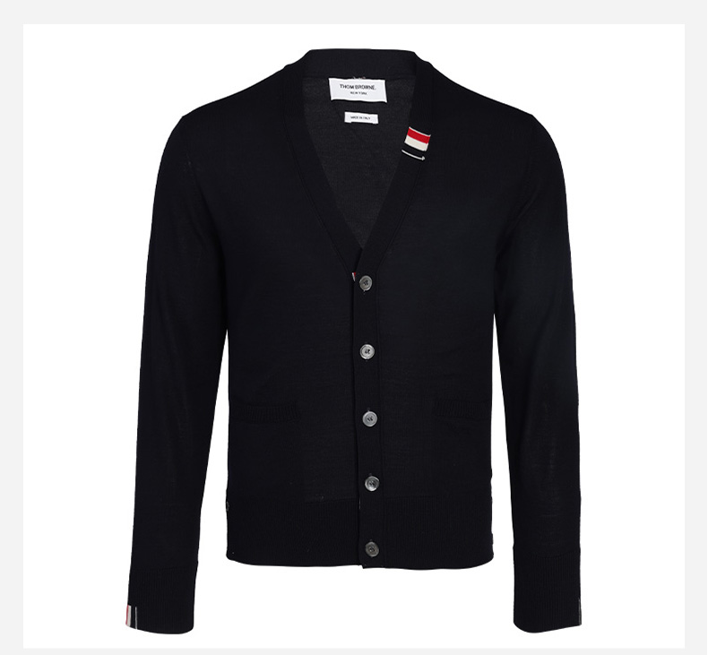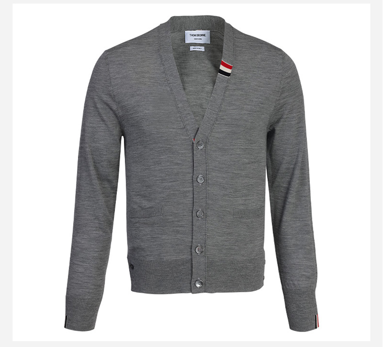 【超惠秒】THOM BROWNE 汤姆·布朗 男士扣合开襟美利奴弹力羊毛针织衫 11855