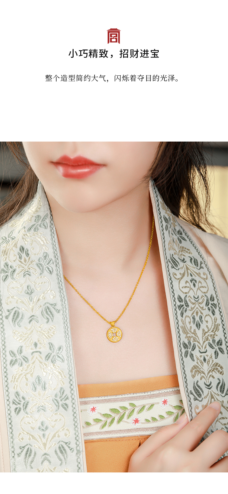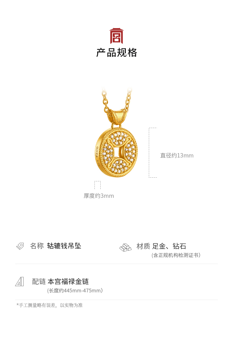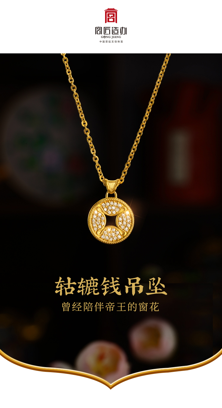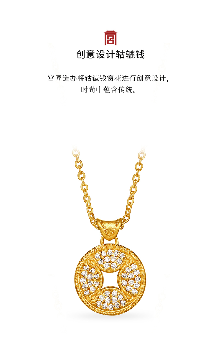宫匠造办 轱辘钱吊坠 黄金镶钻