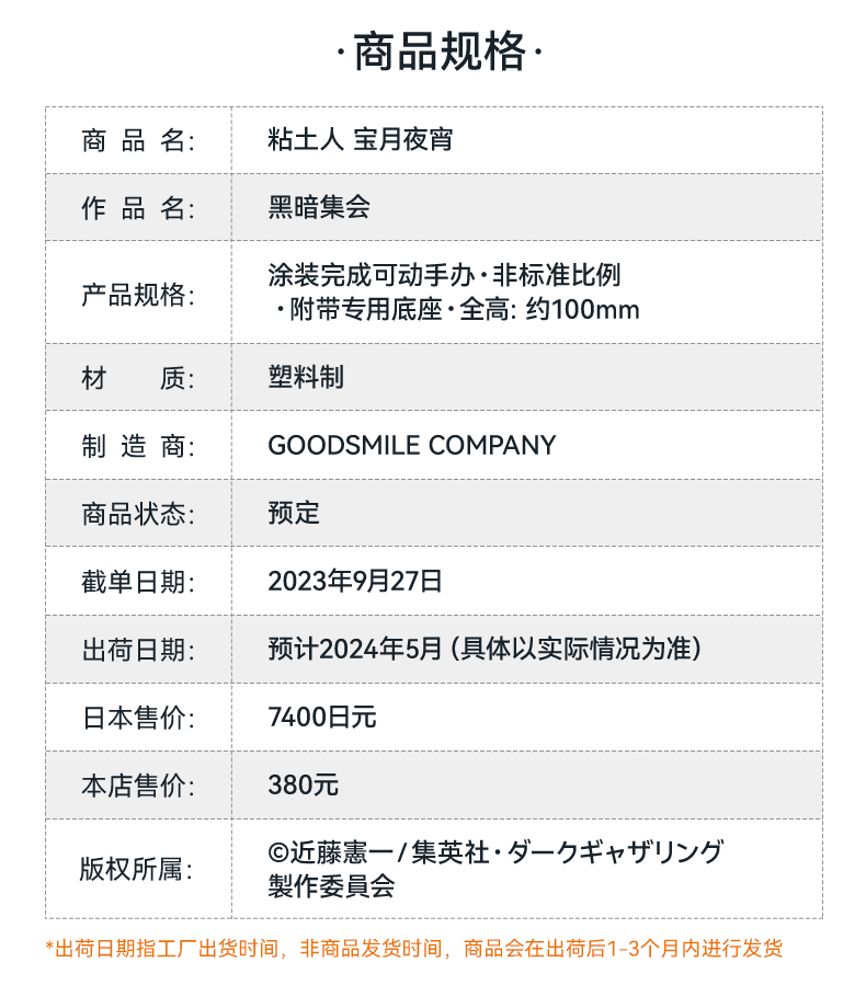 【GSC积分兑换】粘土人 宝月夜宵 黑暗集会