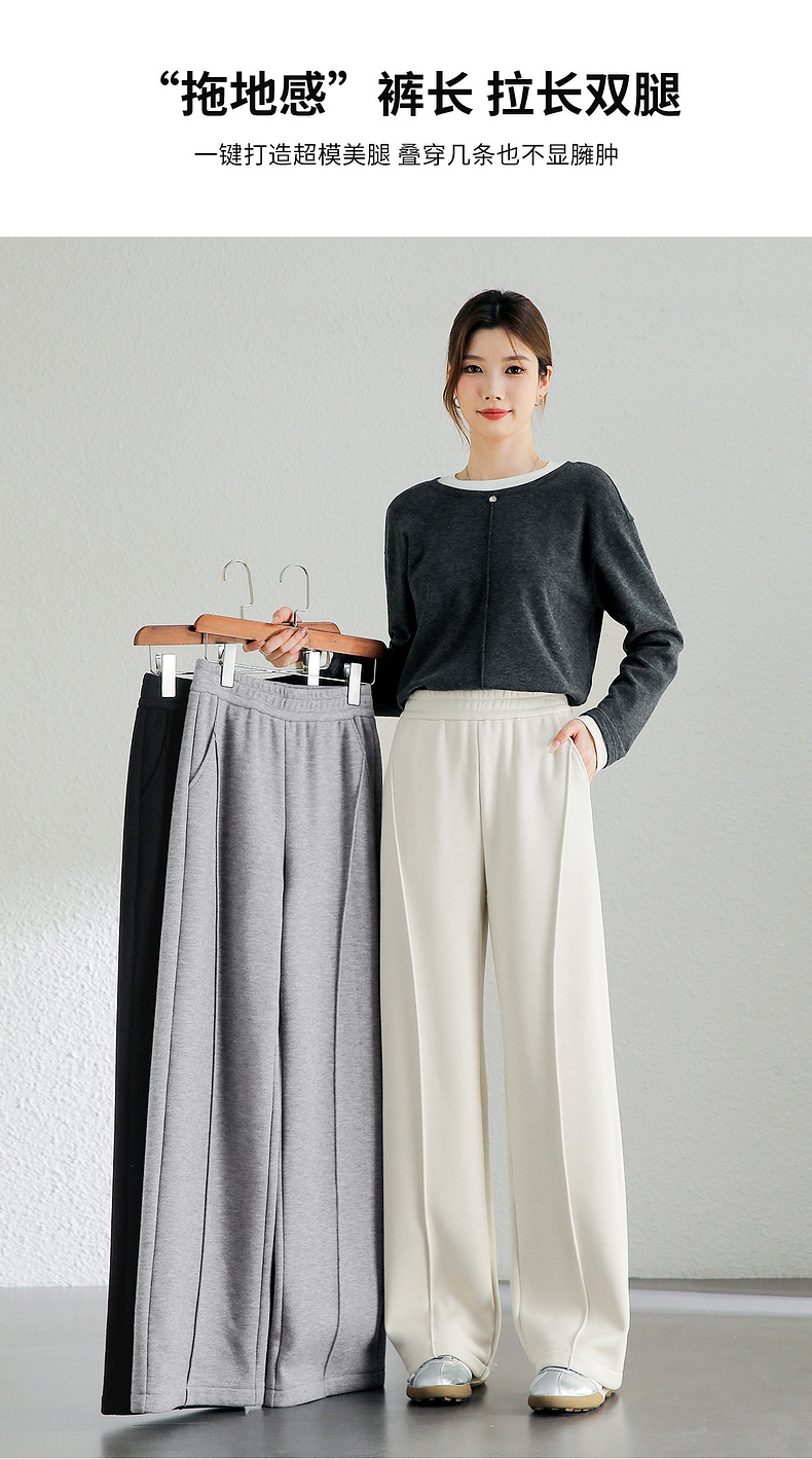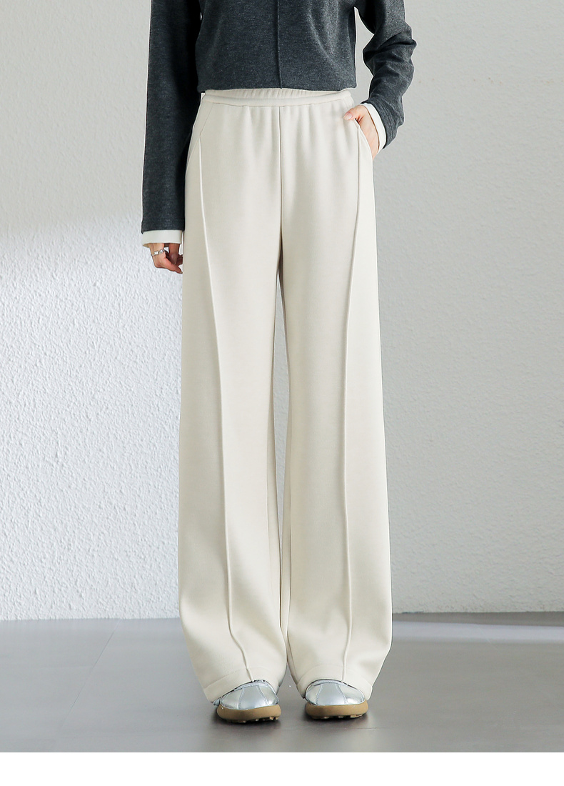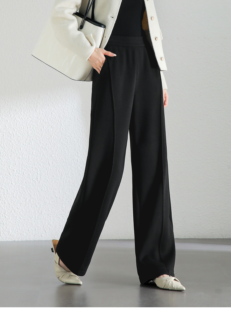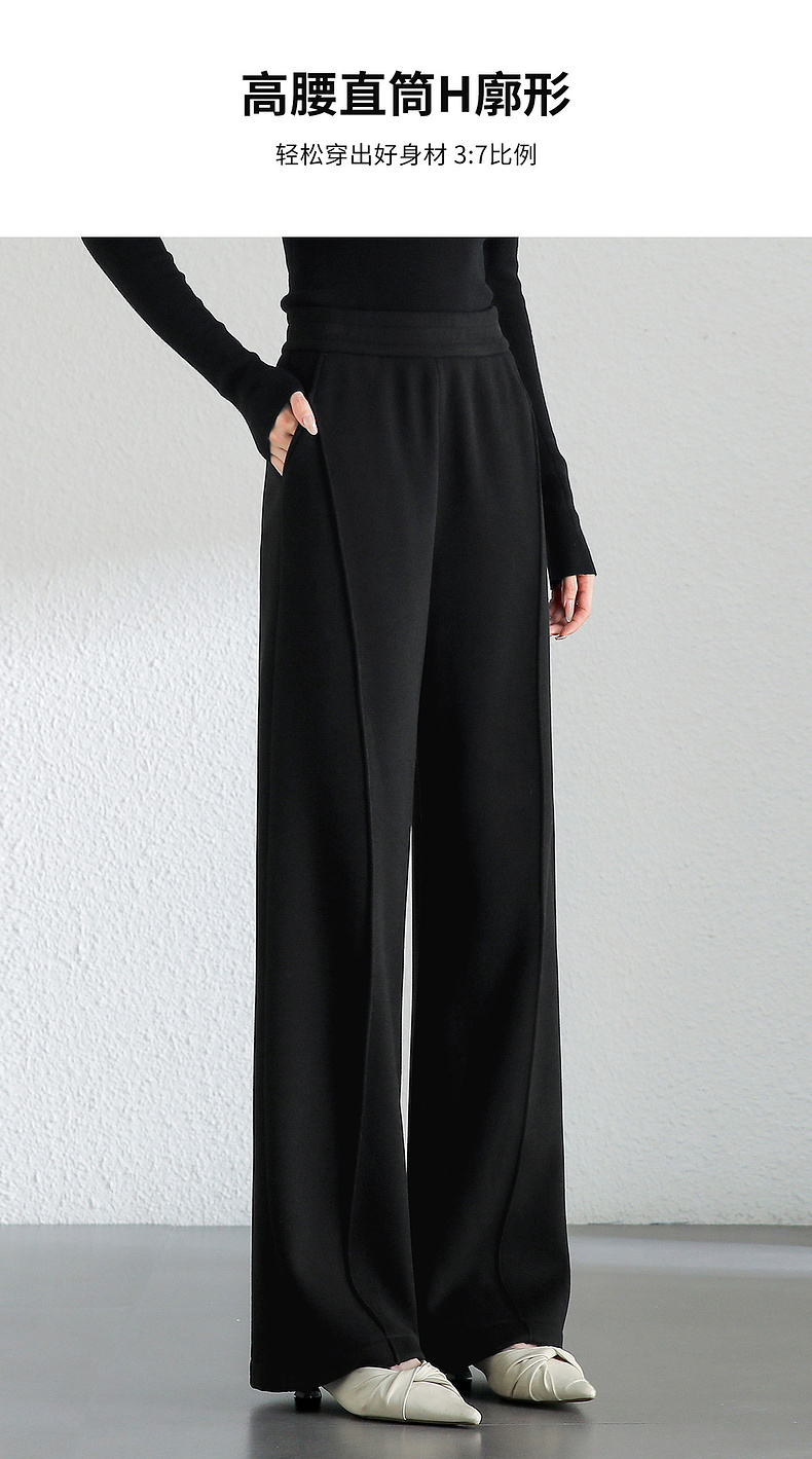 【内购】简约通勤橡筋高腰拼接解构线条对称口袋显瘦加绒直筒长裤-144K56761