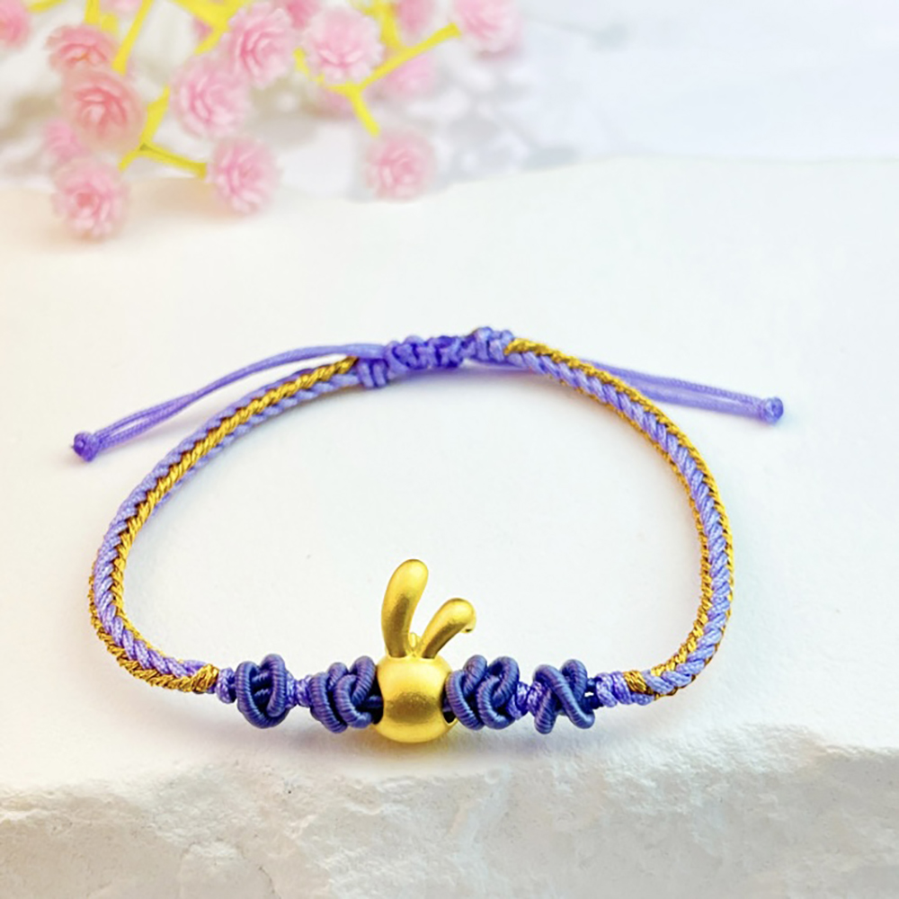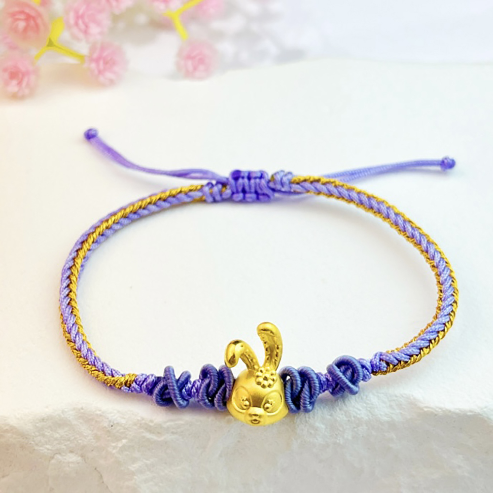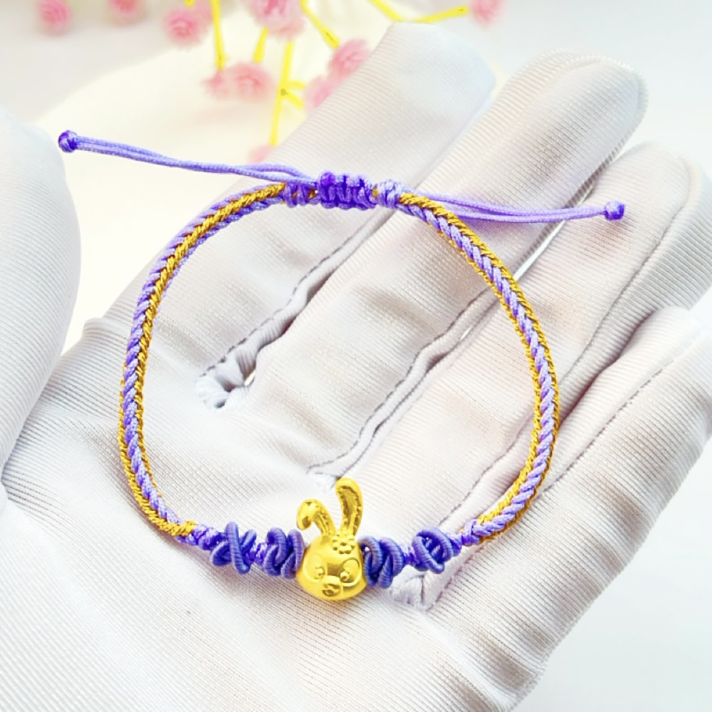 【限时7.5折】【定价黄金】足金 3D硬金兔年生肖星黛露兔子紫金绳调节成品手串(AA3DSC00336)(预售产品下单后不退款不退货不换货不补差价)