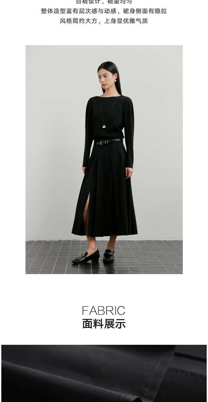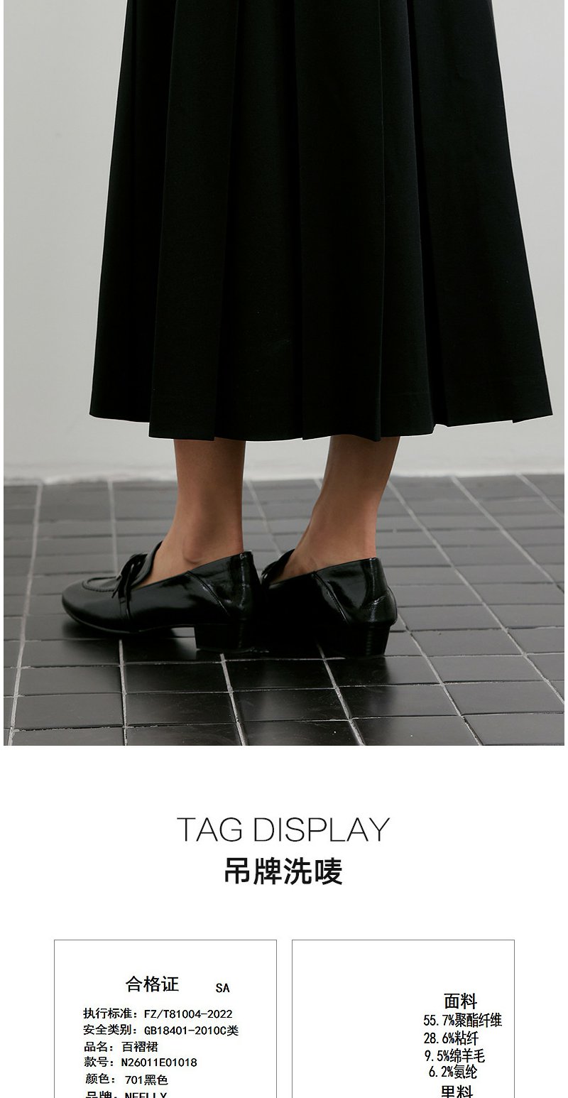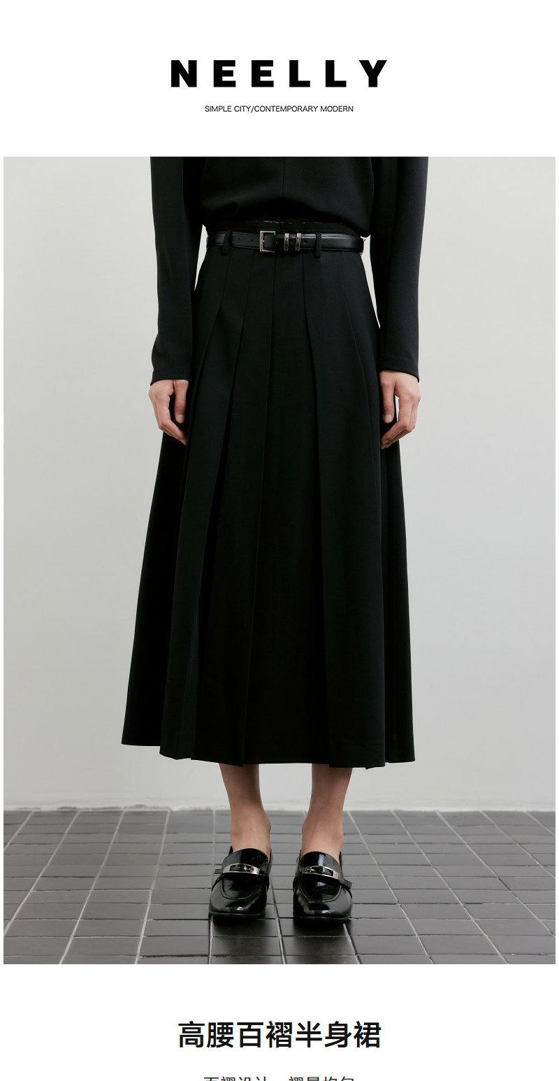 NEELLY纳俪商场同款春新款时尚优雅百褶半身裙女收腰显瘦A字长裙N26011E01018
