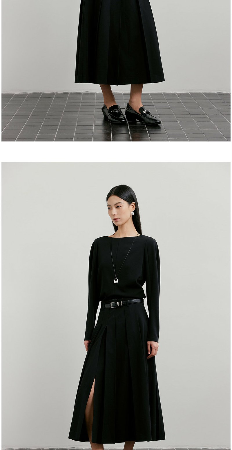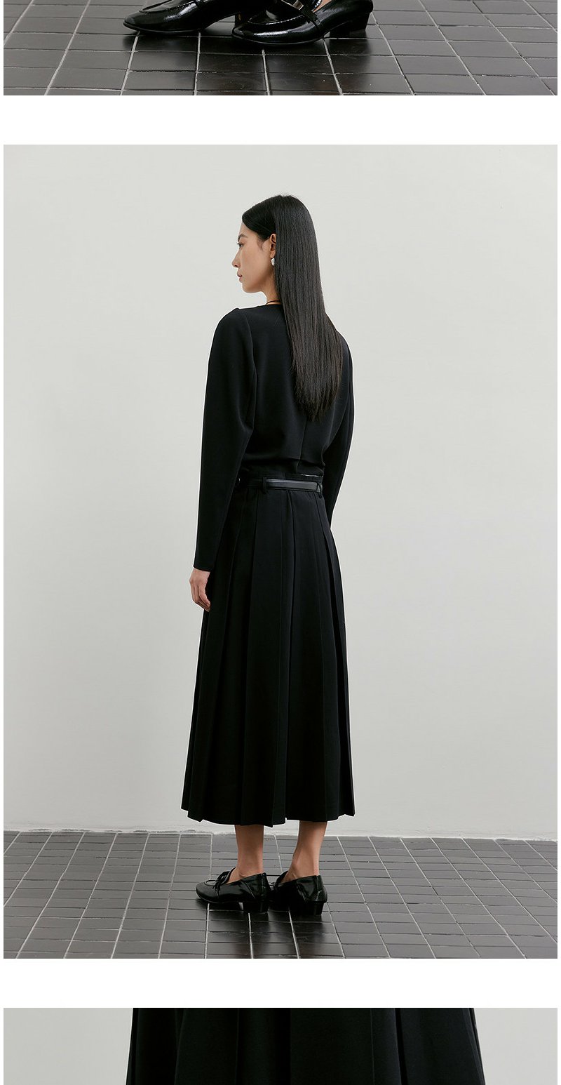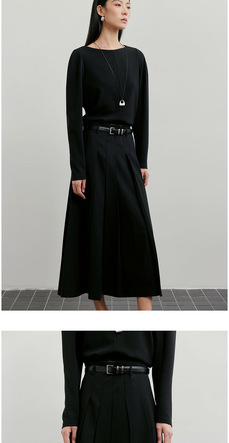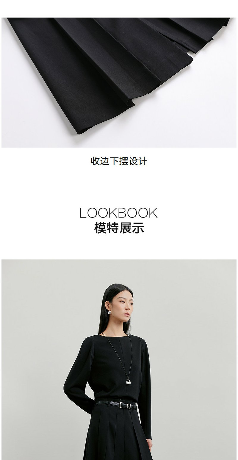 NEELLY纳俪商场同款春新款时尚优雅百褶半身裙女收腰显瘦A字长裙N26011E01018