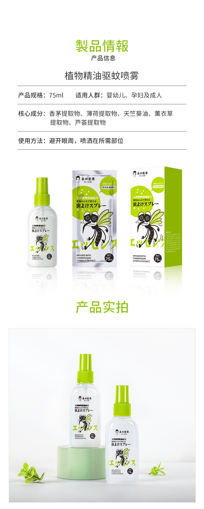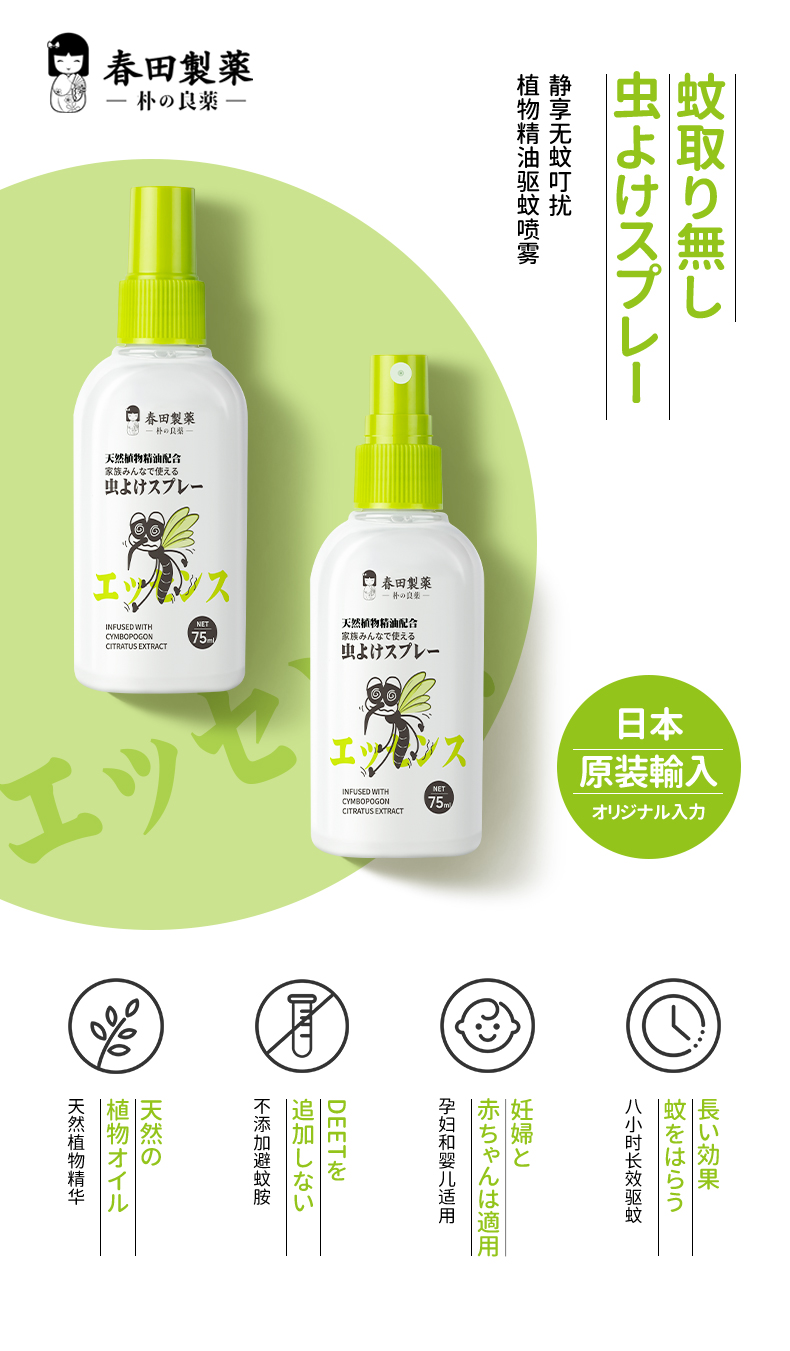 日本朴小药植物精油驱蚊喷雾75ml/盒