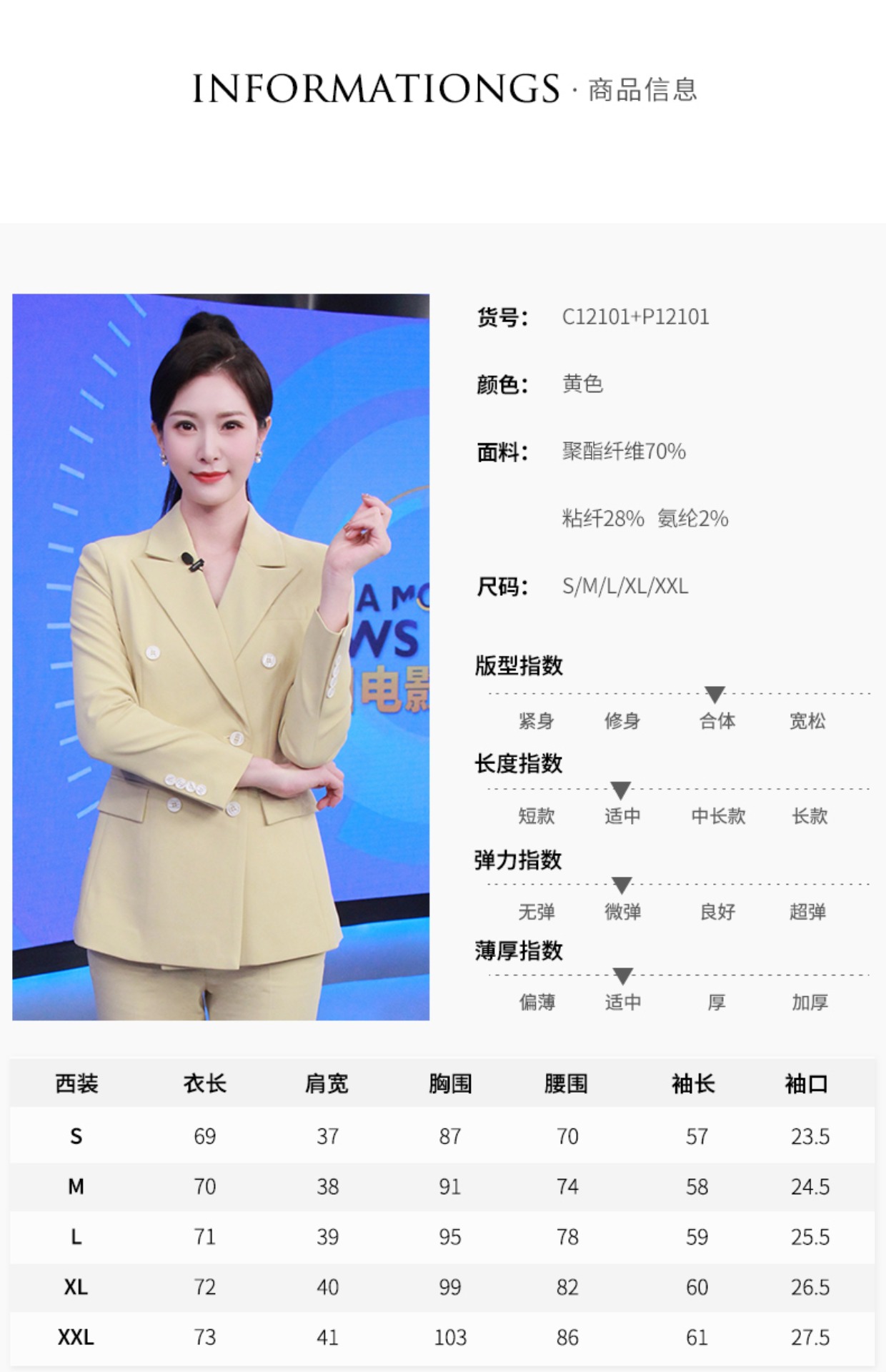 IWY/黄色西装套装新款气质高端主持人正装上镜西服职业装两件套CP12118