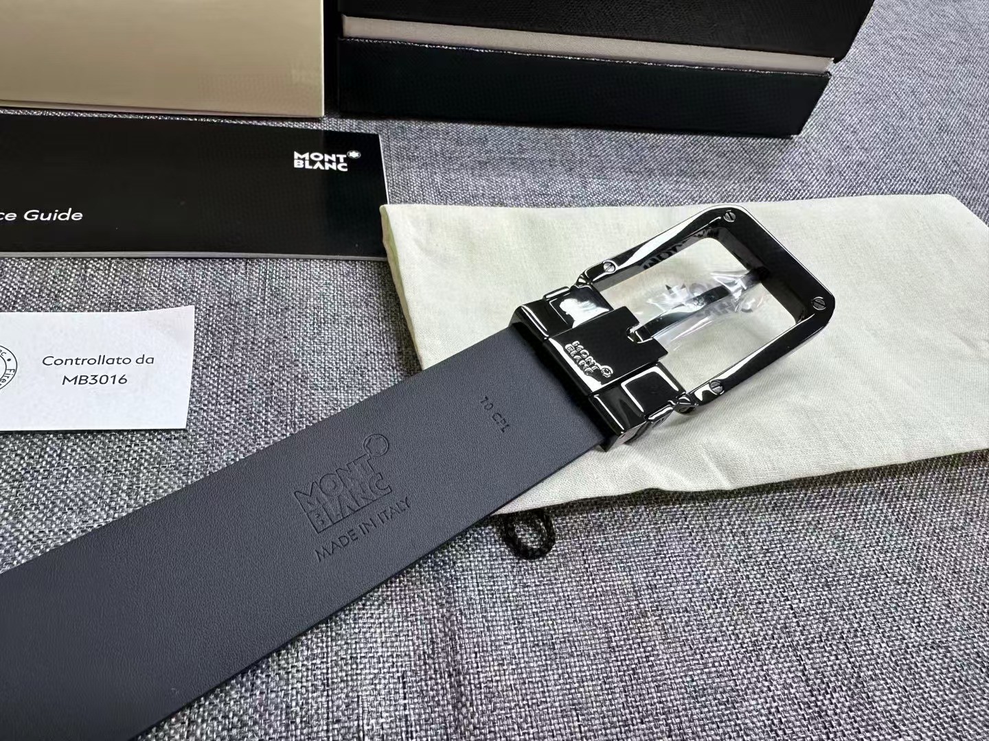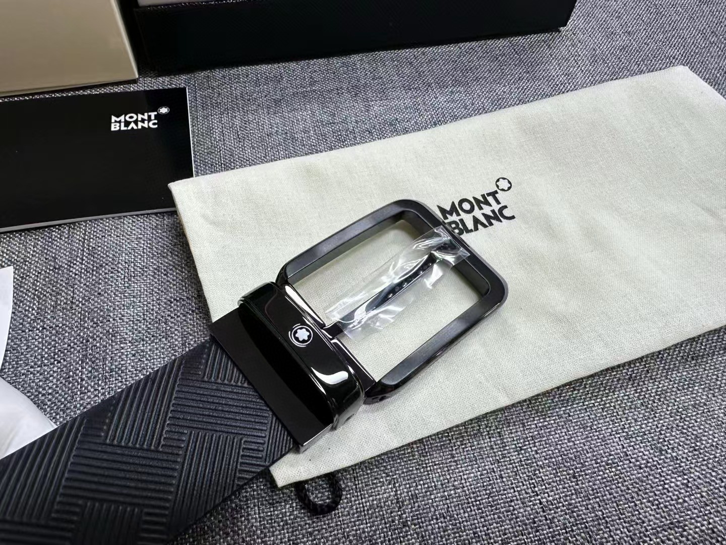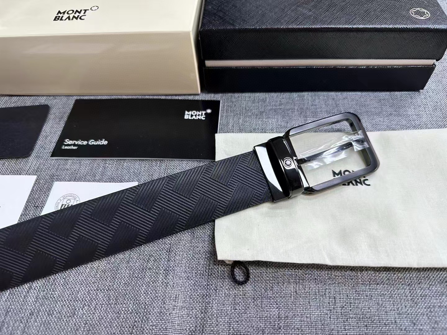 万宝龙风尚系列男士牛皮腰封,货号130587,官价3300+。 自此,万宝龙3.5cm黄金宽度缺片补齐。工艺极其繁杂的扣头,铜质基底,灰度拉丝工艺搭配亮黑镀层,底盖边角螺丝点缀。带身双面采用意产头层小牛皮,风尚系列标志性印花,无车线处理,耐用度辨识度均佳。 整个产品均为全黑处理,烘托扣头上标志性六角星芒,画龙点睛之笔。 宽度3.5cm. 长度120cm.自适应腰围,可裁剪。出韩国贸易公司,全品相,送礼自用佳。 数量不多。PS:因批次问题Logo会存在腐蚀或者激光工艺不同问题