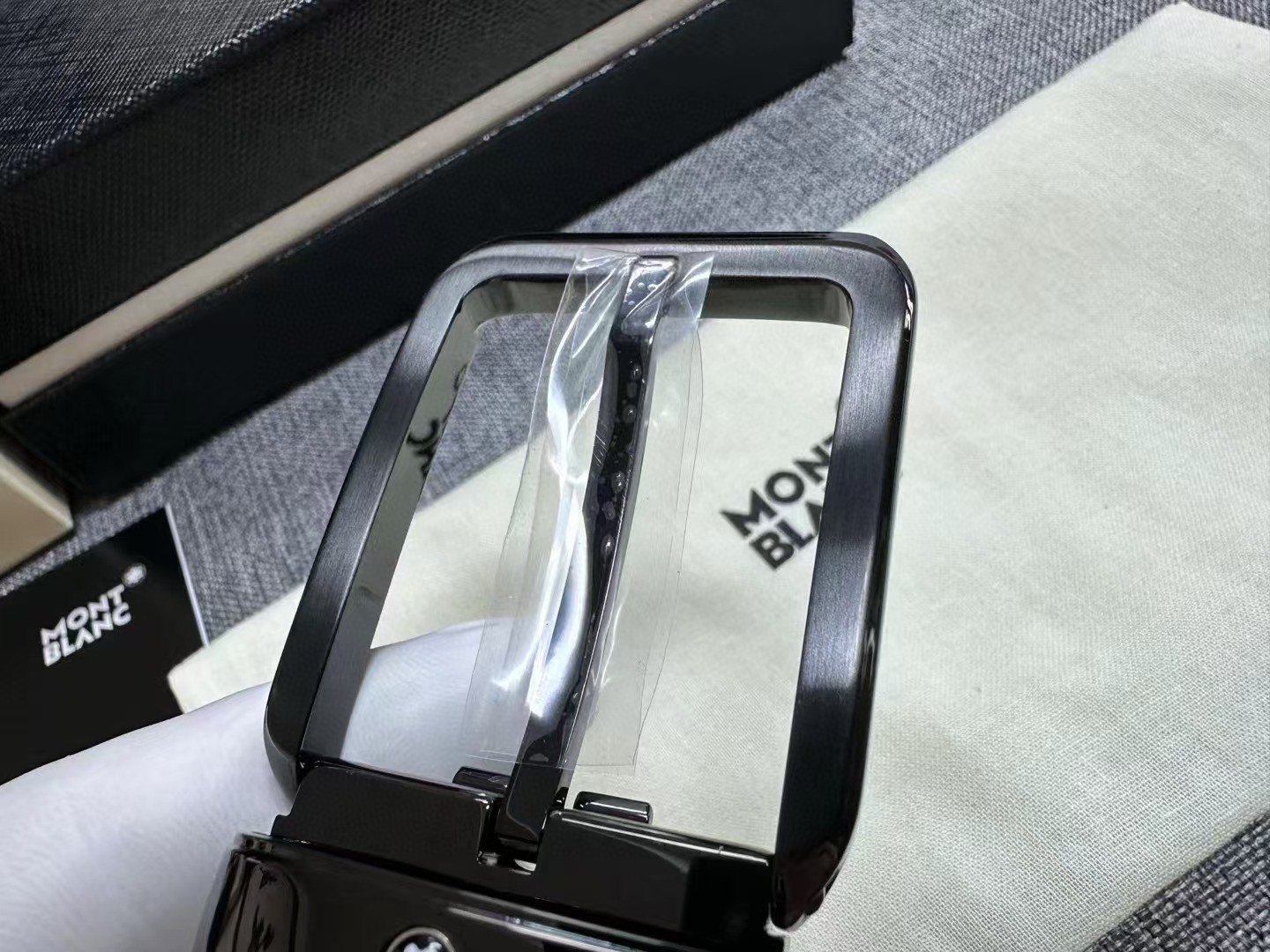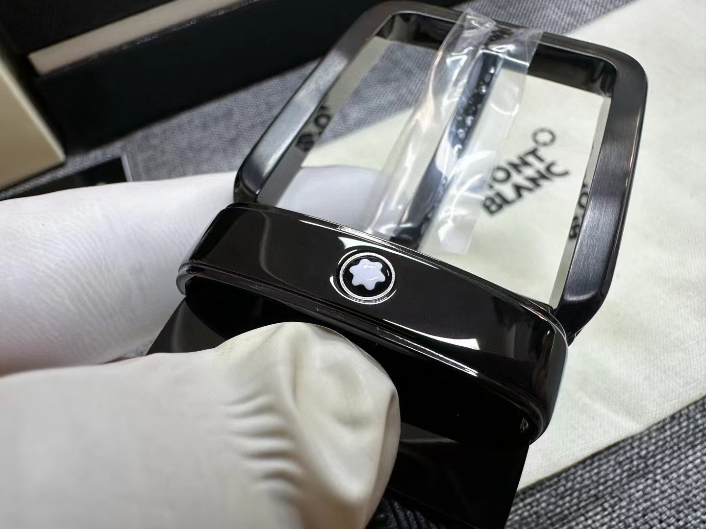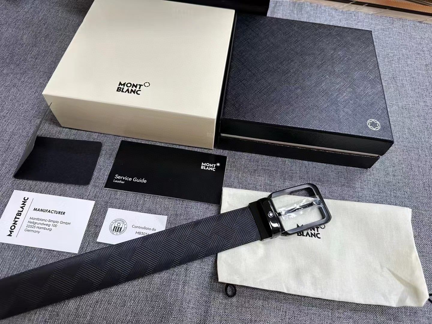 万宝龙风尚系列男士牛皮腰封,货号130587,官价3300+。 自此,万宝龙3.5cm黄金宽度缺片补齐。工艺极其繁杂的扣头,铜质基底,灰度拉丝工艺搭配亮黑镀层,底盖边角螺丝点缀。带身双面采用意产头层小牛皮,风尚系列标志性印花,无车线处理,耐用度辨识度均佳。 整个产品均为全黑处理,烘托扣头上标志性六角星芒,画龙点睛之笔。 宽度3.5cm. 长度120cm.自适应腰围,可裁剪。出韩国贸易公司,全品相,送礼自用佳。 数量不多。PS:因批次问题Logo会存在腐蚀或者激光工艺不同问题