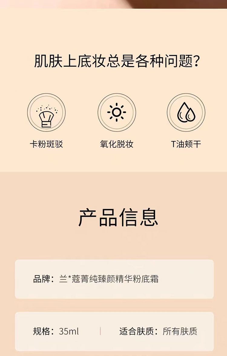 【品牌授权】兰蔻菁纯臻颜精华粉底霜提亮滋润养肤遮瑕久服帖养肤100/110 控油保湿柔雾清透