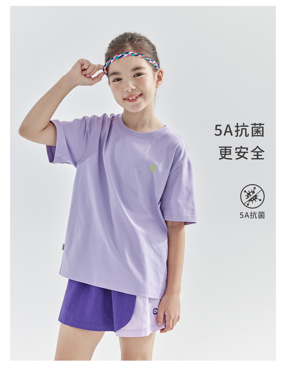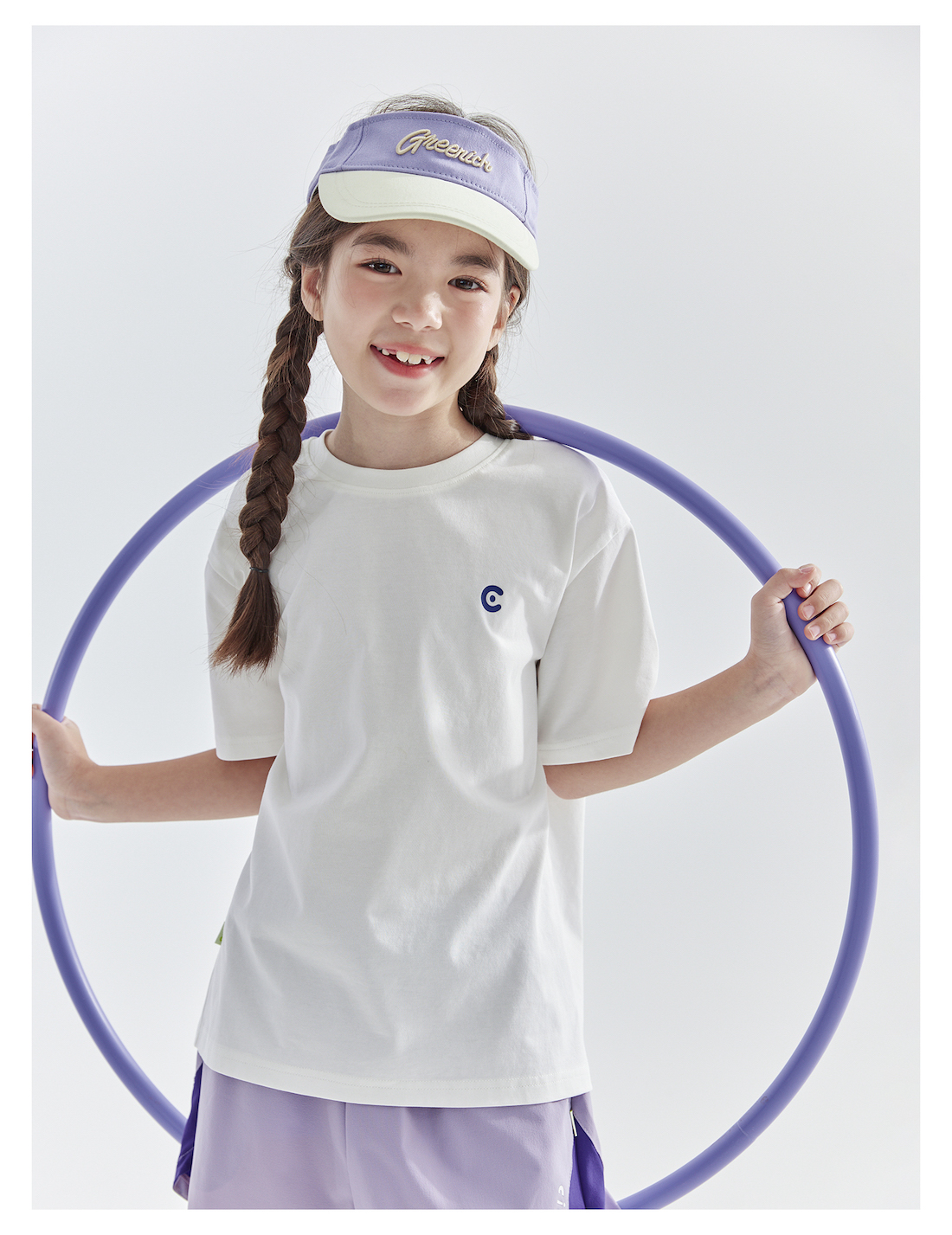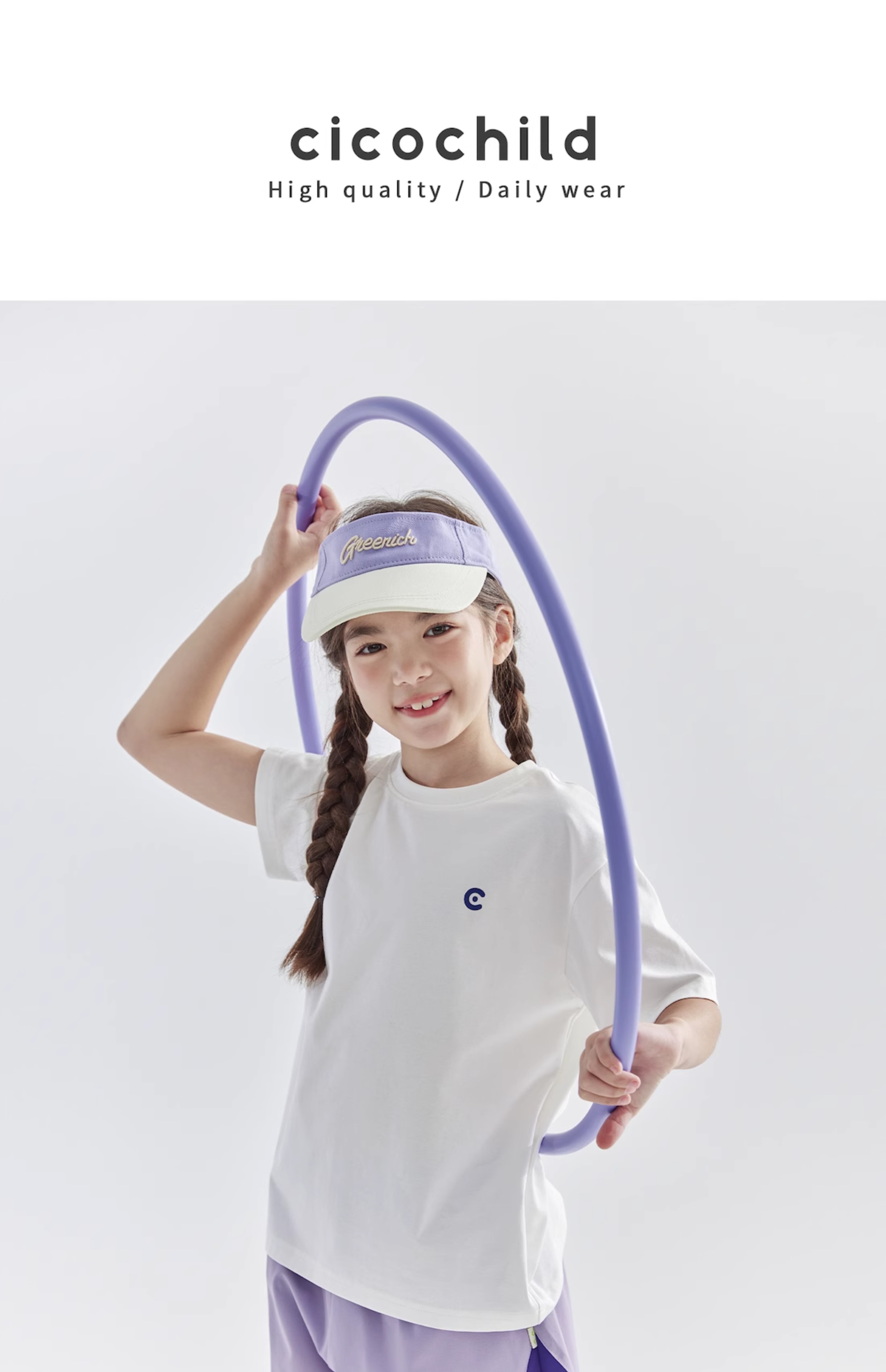 【代发】运动短袖T恤 cicochild夏季款中大女童休闲上衣粉色/白色