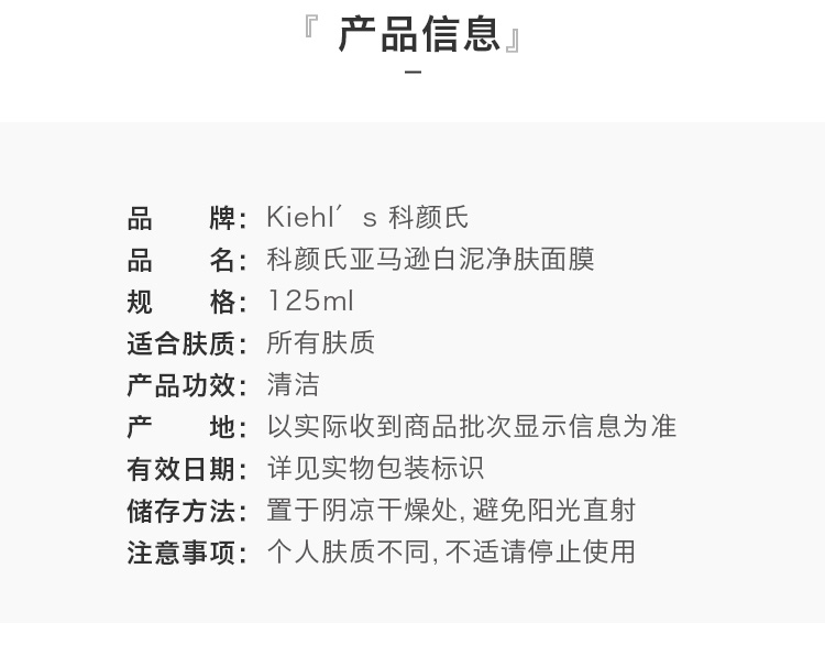 【1件包邮】科颜氏亚马逊白泥清洁面膜125ml/118090 吸走黑头油脂 甘肃/青海/内蒙古/新疆/西藏/宁夏/海南/港澳台不发货