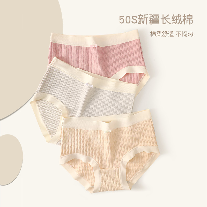 【花边女内裤】花边少女精梳内裤女士中腰舒适全棉中腰裆三角裤白边