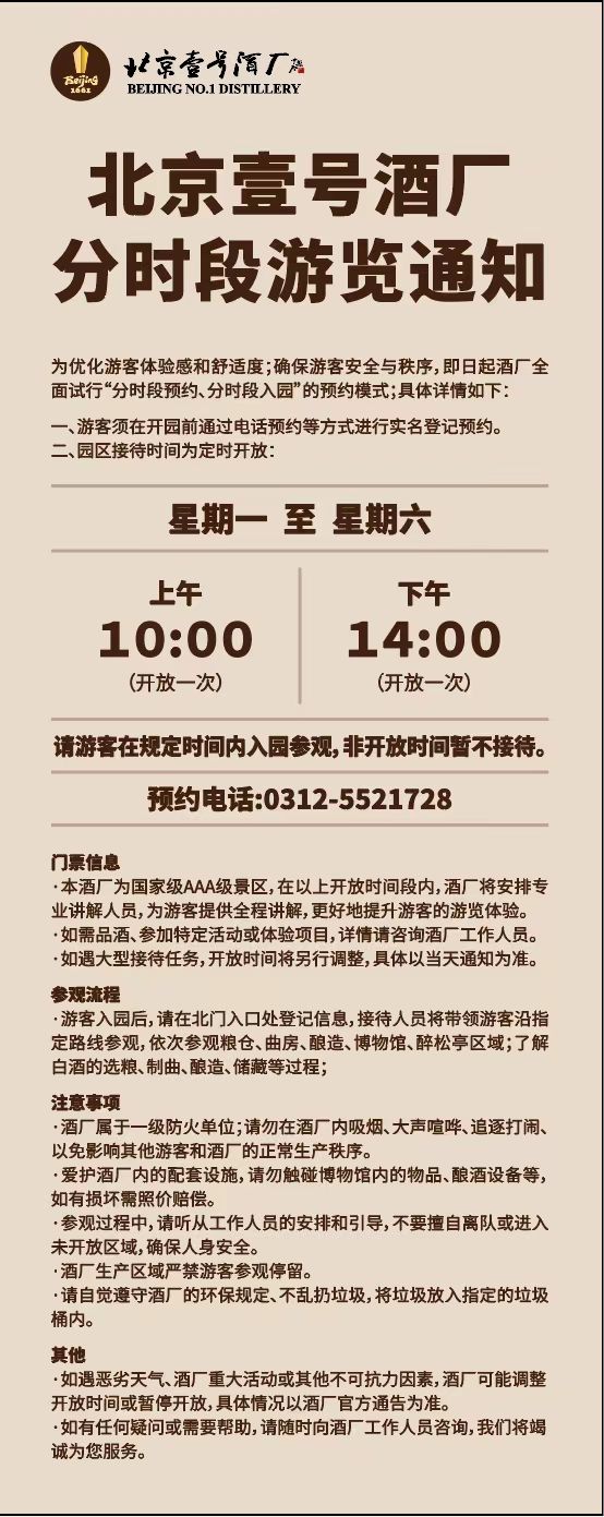 【酒厂参观预约】北京壹号酒厂观光门票预约