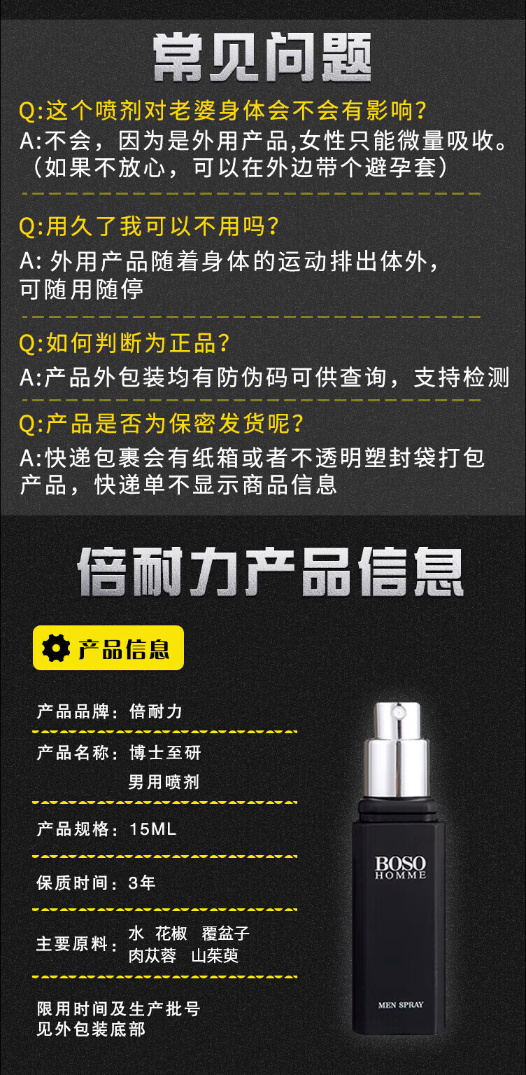 倍耐力 延时喷剂 倍爱力男用正品博士BOSO喷雾 成人情趣用品 加强版 15ml