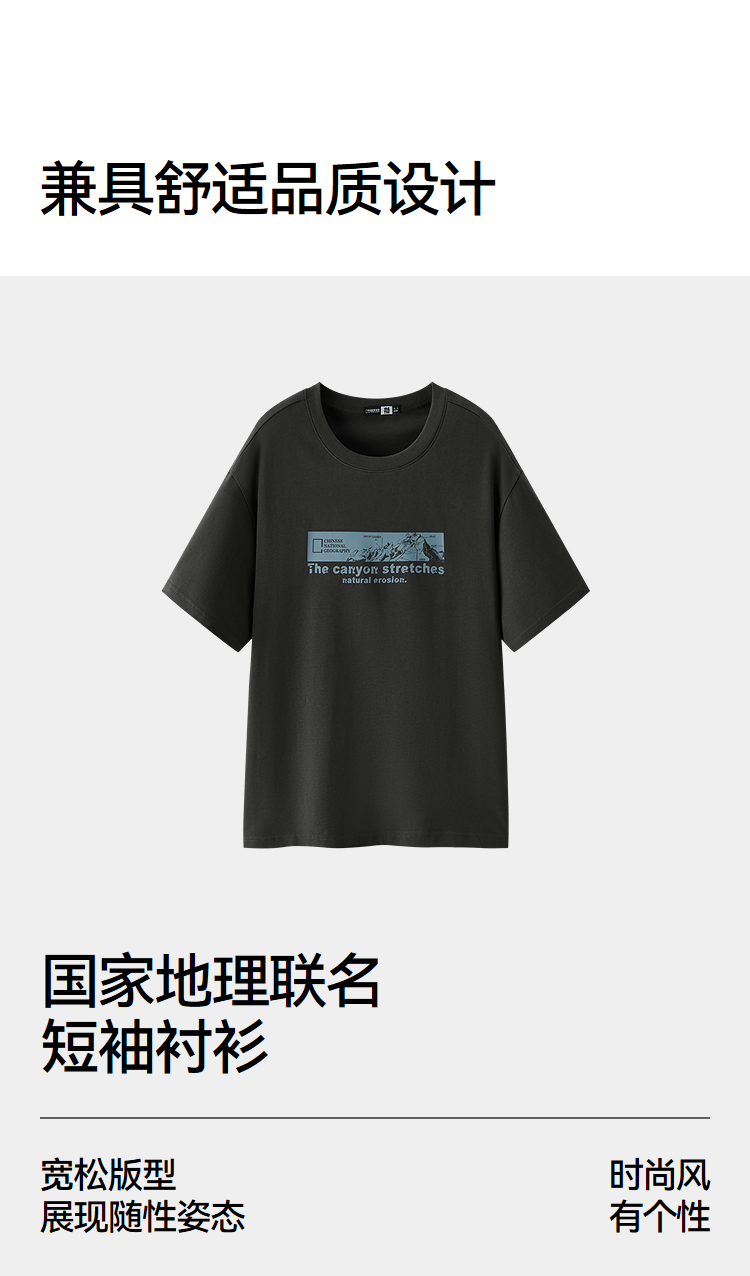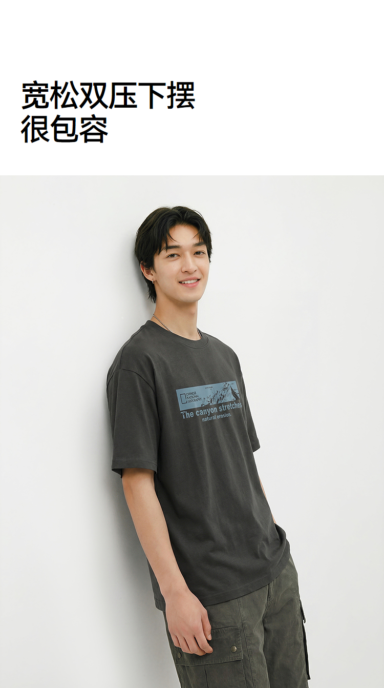 森马中国国家地理系列短袖T恤男夏季户外印花针织衫潮流百搭上衣