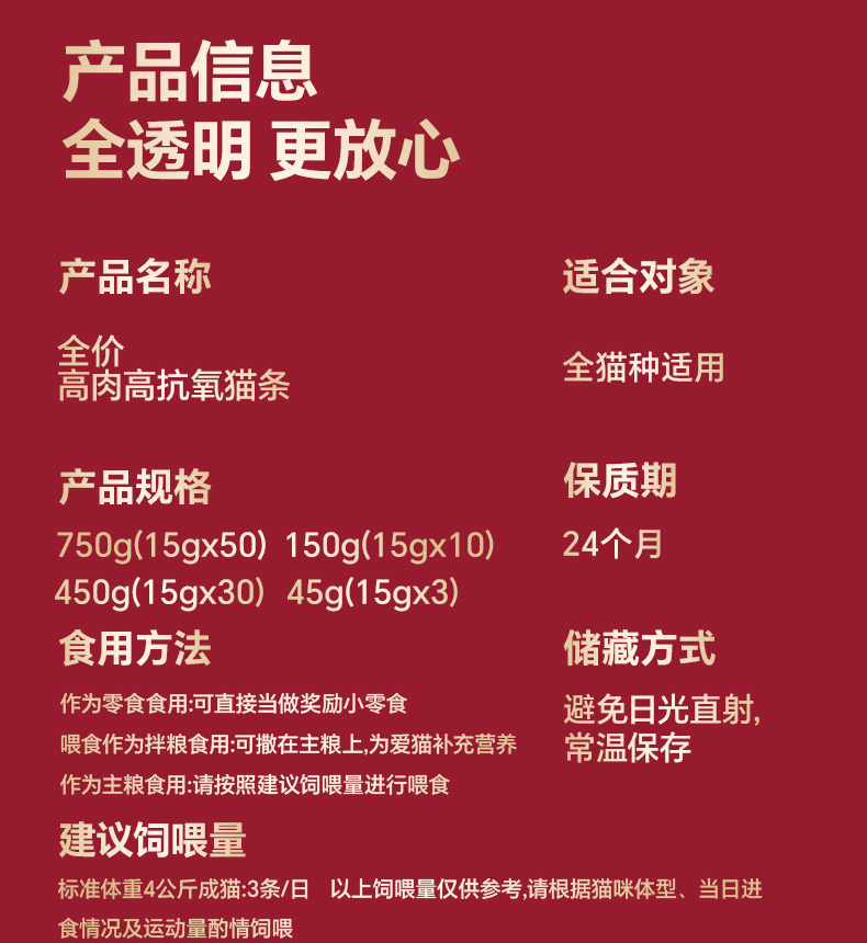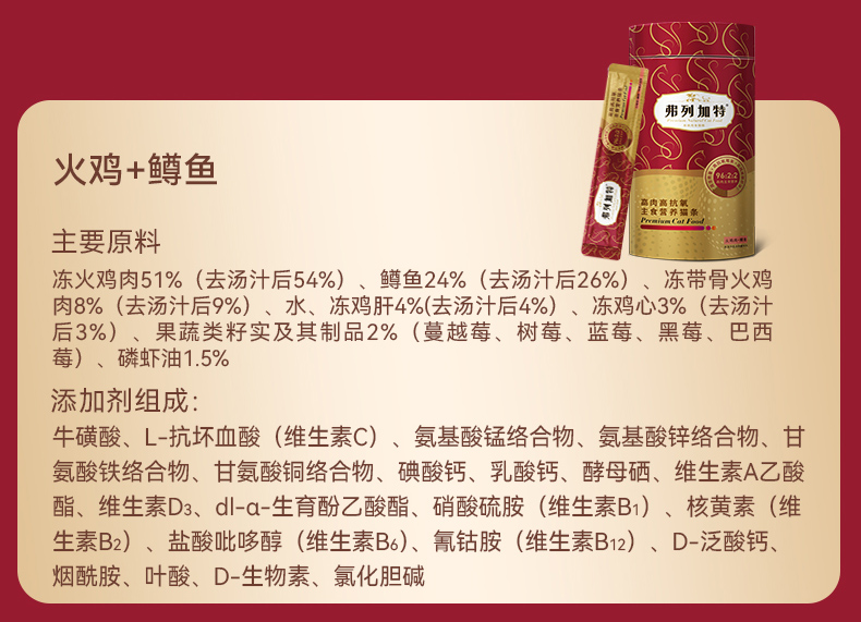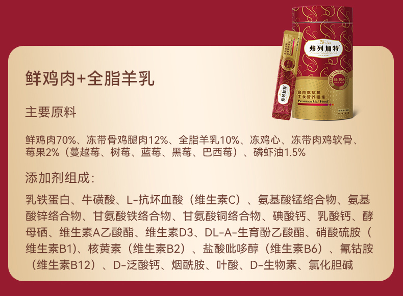 弗列加特高肉高抗氧营养主食猫条 成猫猫条 美毛零食