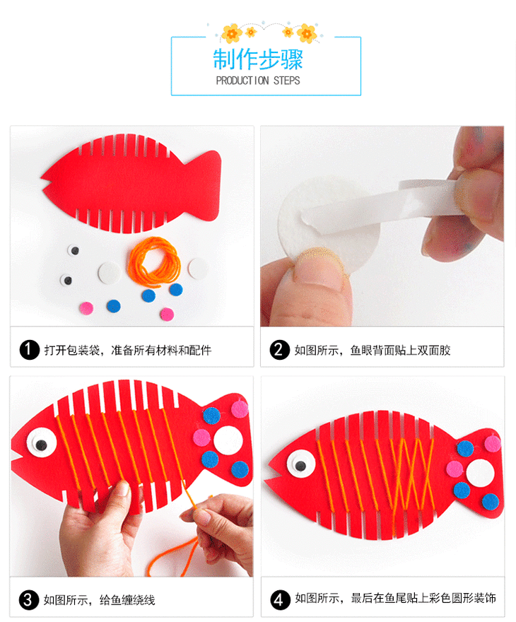 【美可—生活区】幼儿园课堂手工DIY,创意手工不织布鱼绕线板材料包