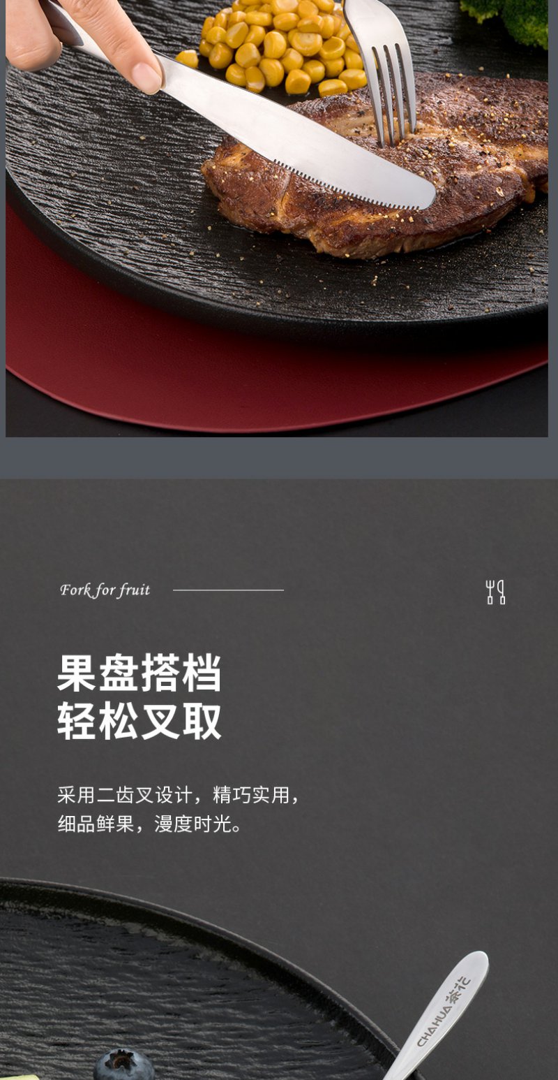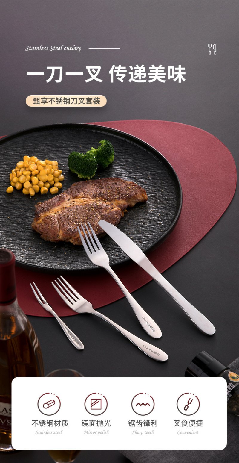 【茶花】欧式304不锈钢西餐刀叉水果叉