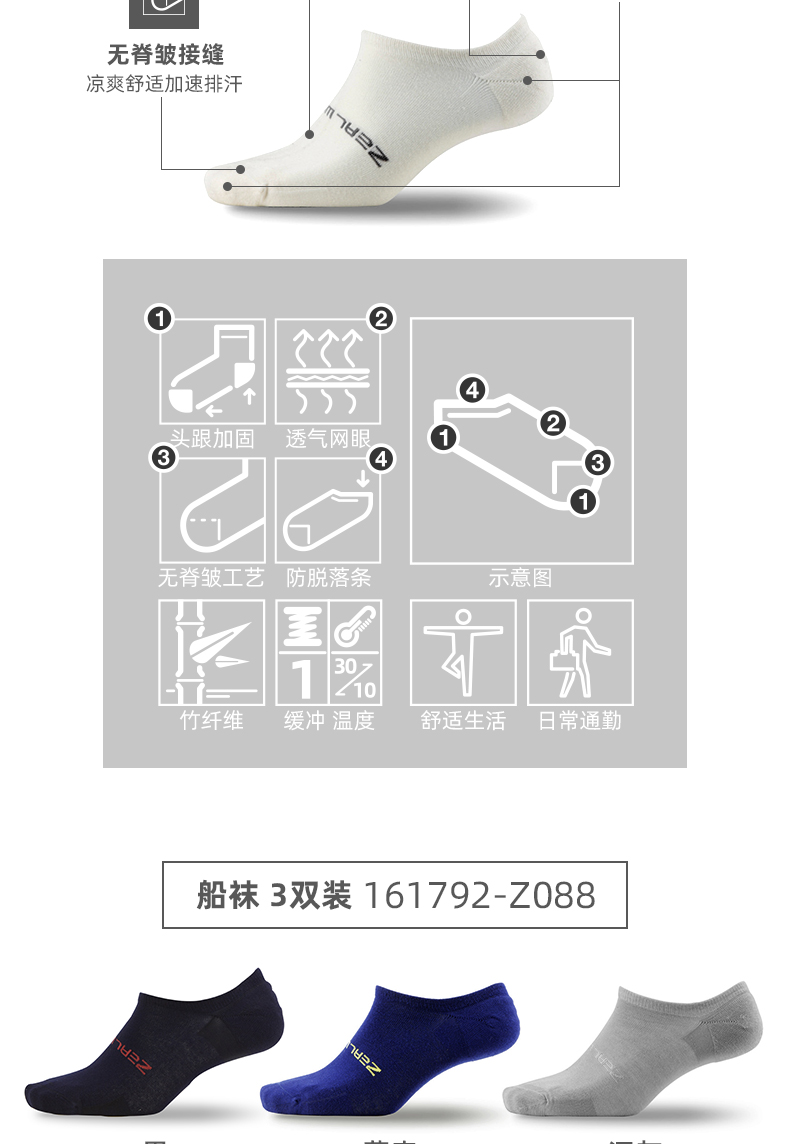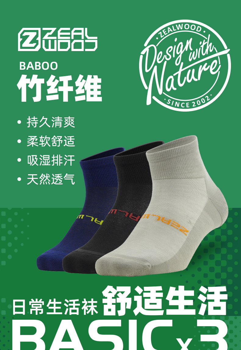 ZEALWOOD赛乐竹纤维袜子男士女船袜透气柔软运动短袜吸汗四季袜