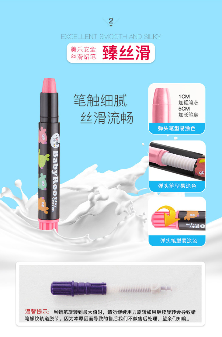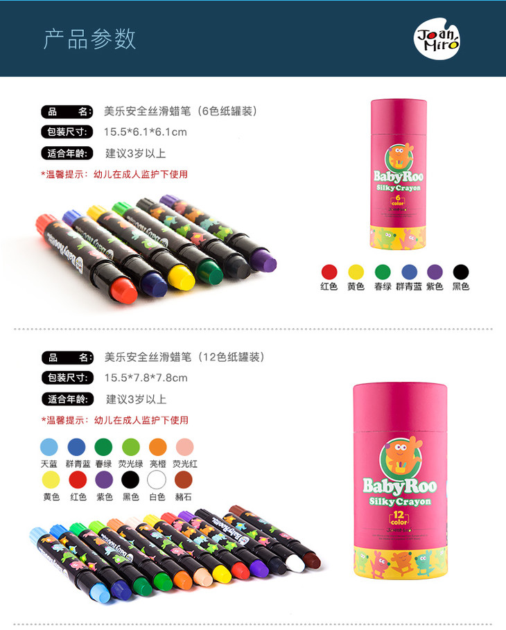【一般贸易】中国美乐JoanMiro贝贝鼠丝滑旋转蜡笔24色