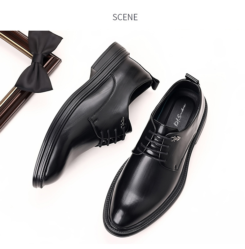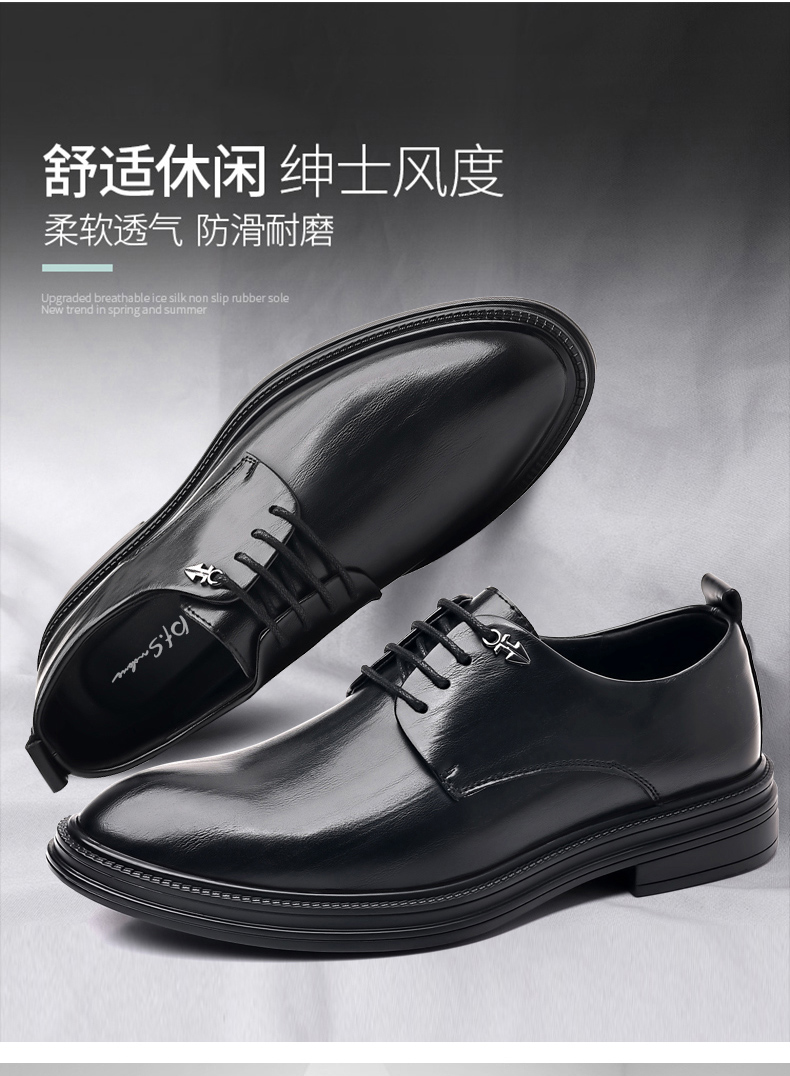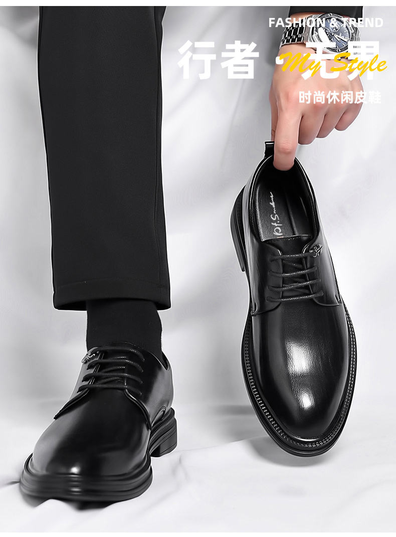 圣得西男士皮鞋秋款正装商务日常通勤中青年圆头系带皮鞋2452963013