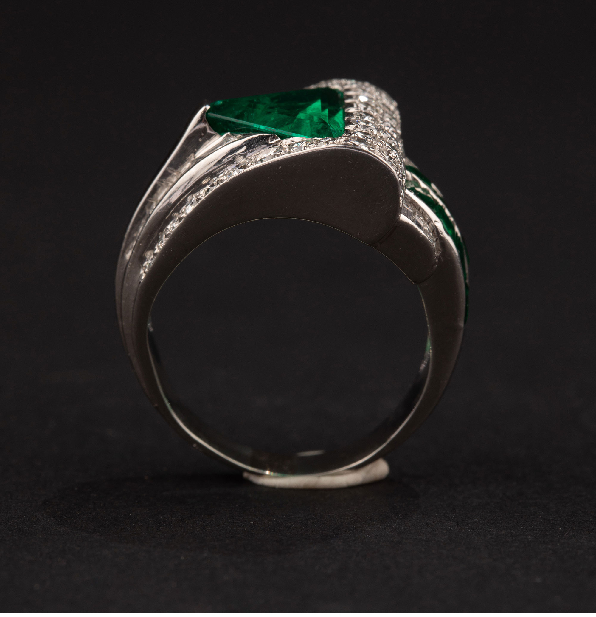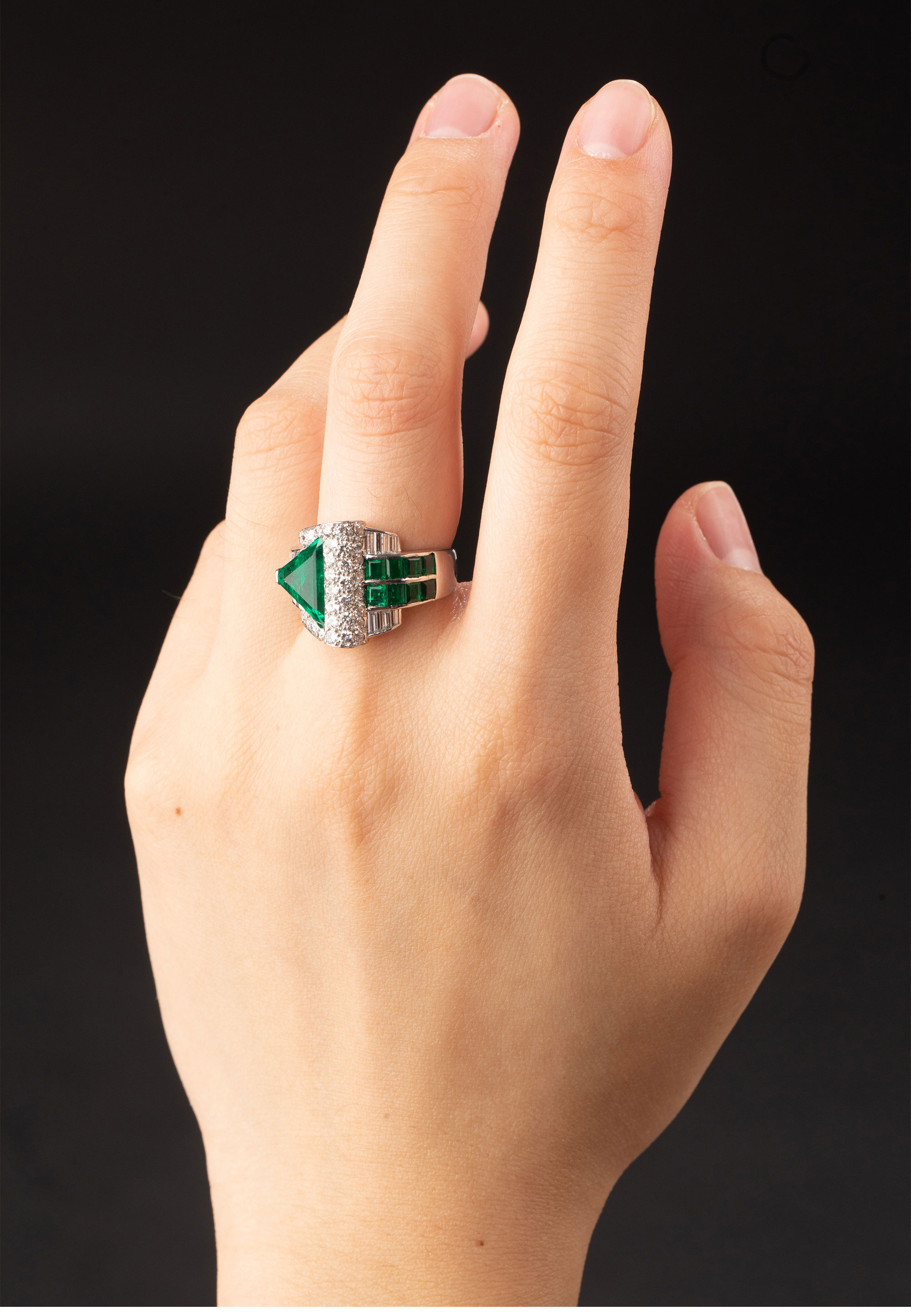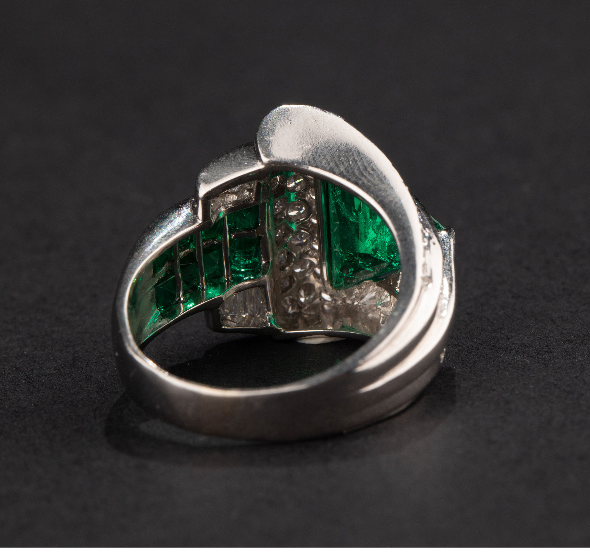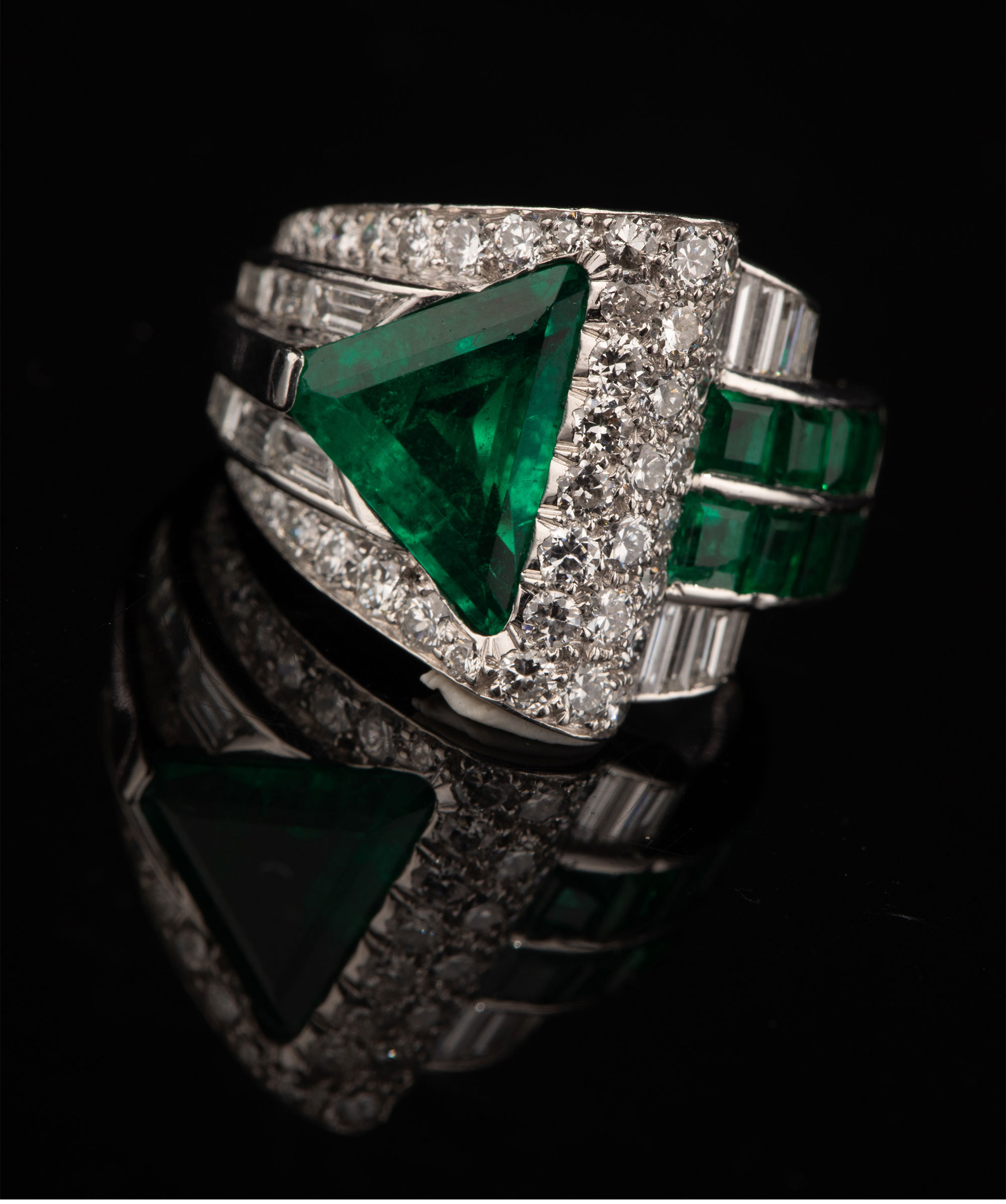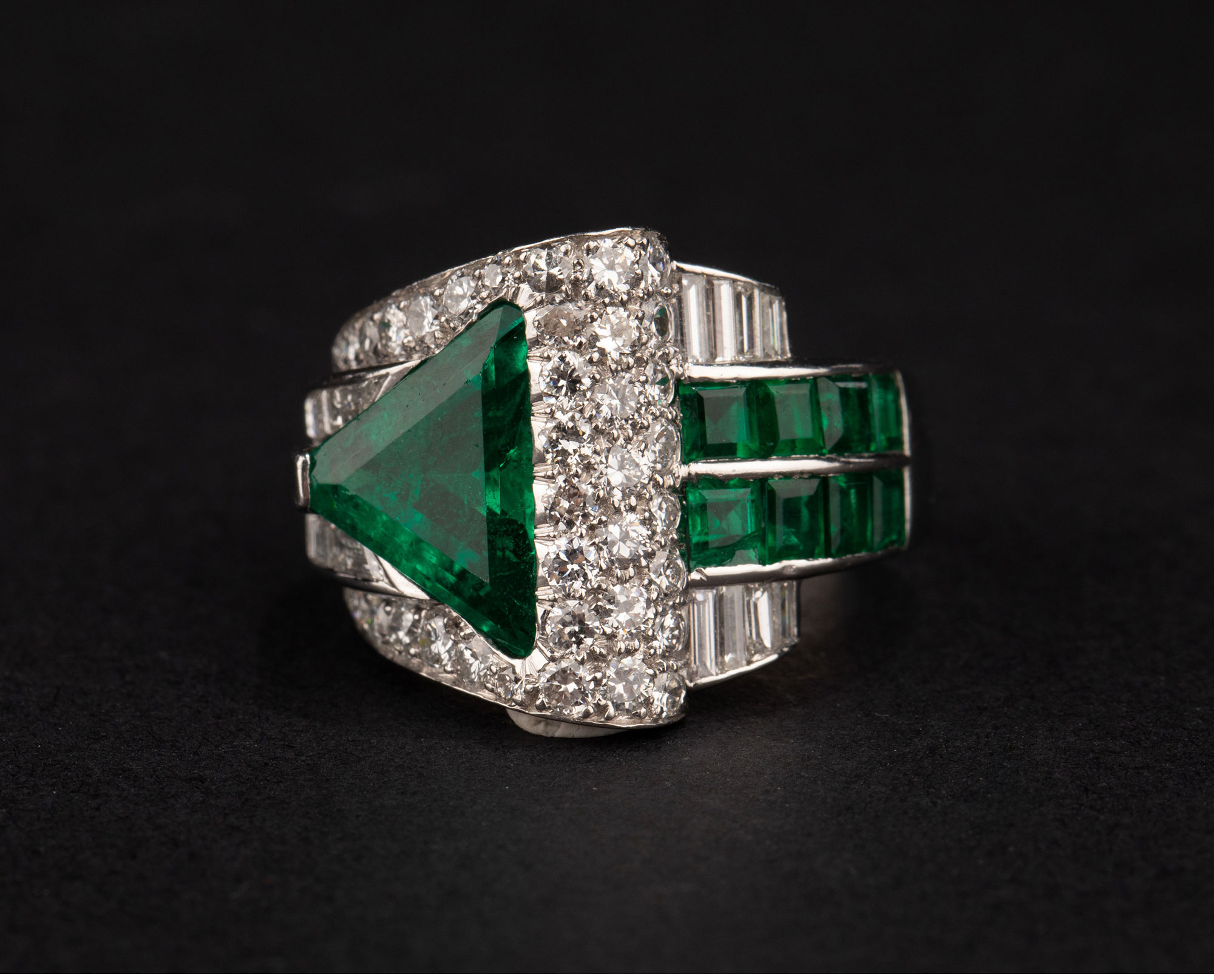 1930年代美国出品装饰艺术风格铂金镶嵌钻石及哥伦比亚祖母绿戒指