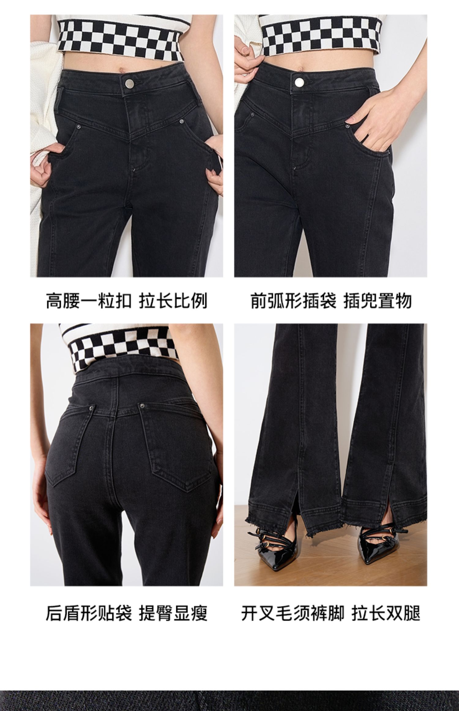 OLrain欧芮儿黑色牛仔裤女春季2024年新款高腰百搭直筒开叉微喇裤