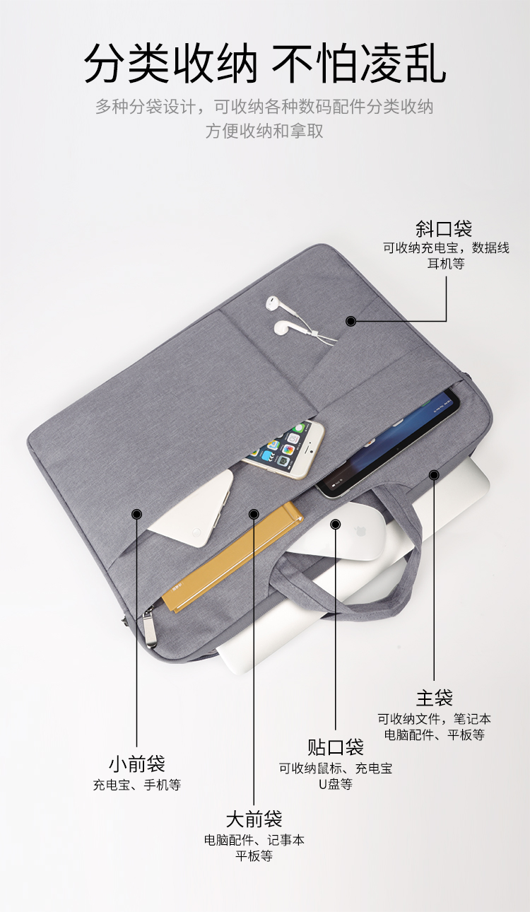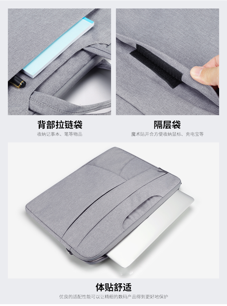 BUBM 苹果小米联想14英寸笔记本电脑包女手提商务内胆包男华硕戴尔保护套薄公文 FMBT-14灰色