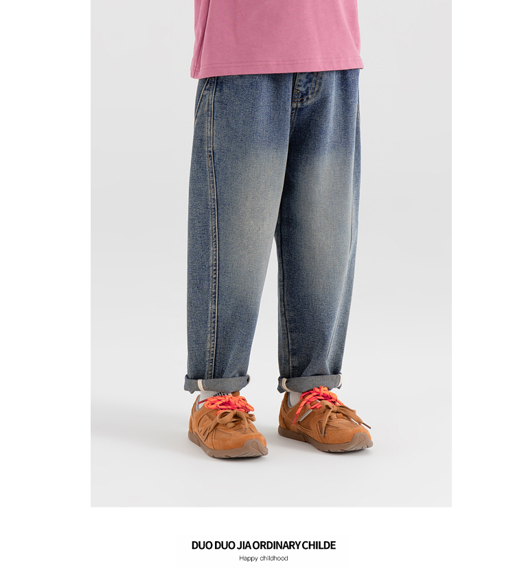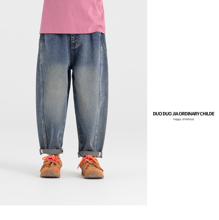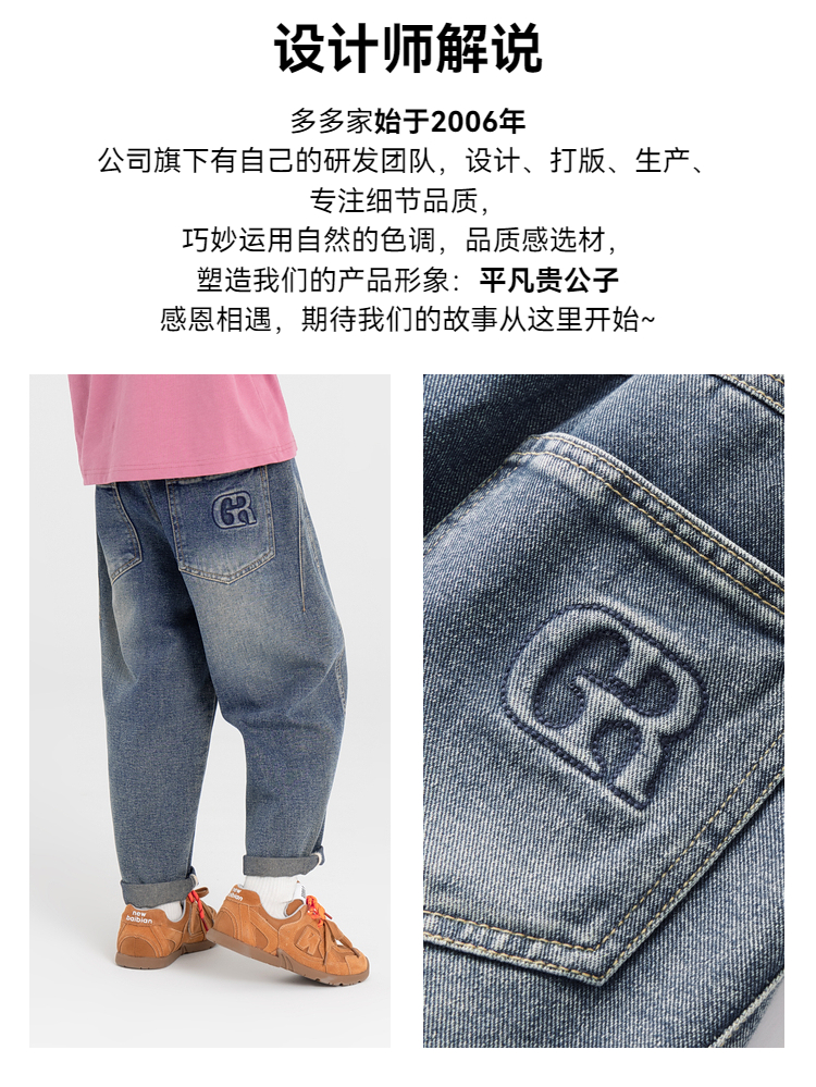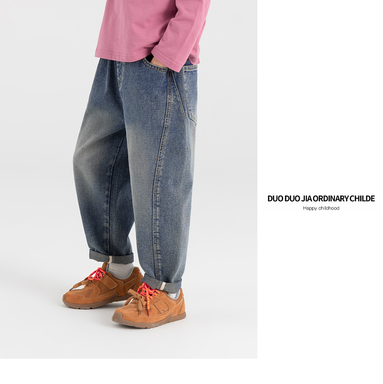 【件件底价,童装双倍积分】多多家男童牛仔裤2025新款春秋儿童裤子男孩复古刺绣宽松洋气长裤11088