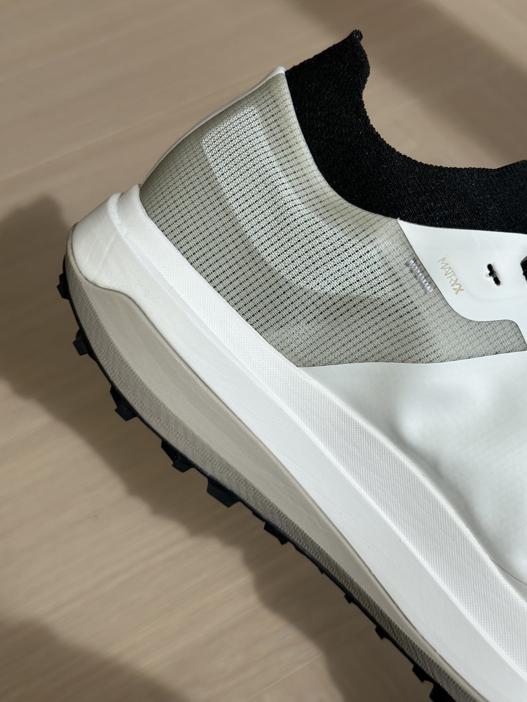 鞋面Matryx Micr 清爽透气,而且脚踝处还采用了袜套设计,上脚后包裹感更强一点。尺码的话建议比平时大半码或者一码, 因为有袜套的设计小了话会有点勒。